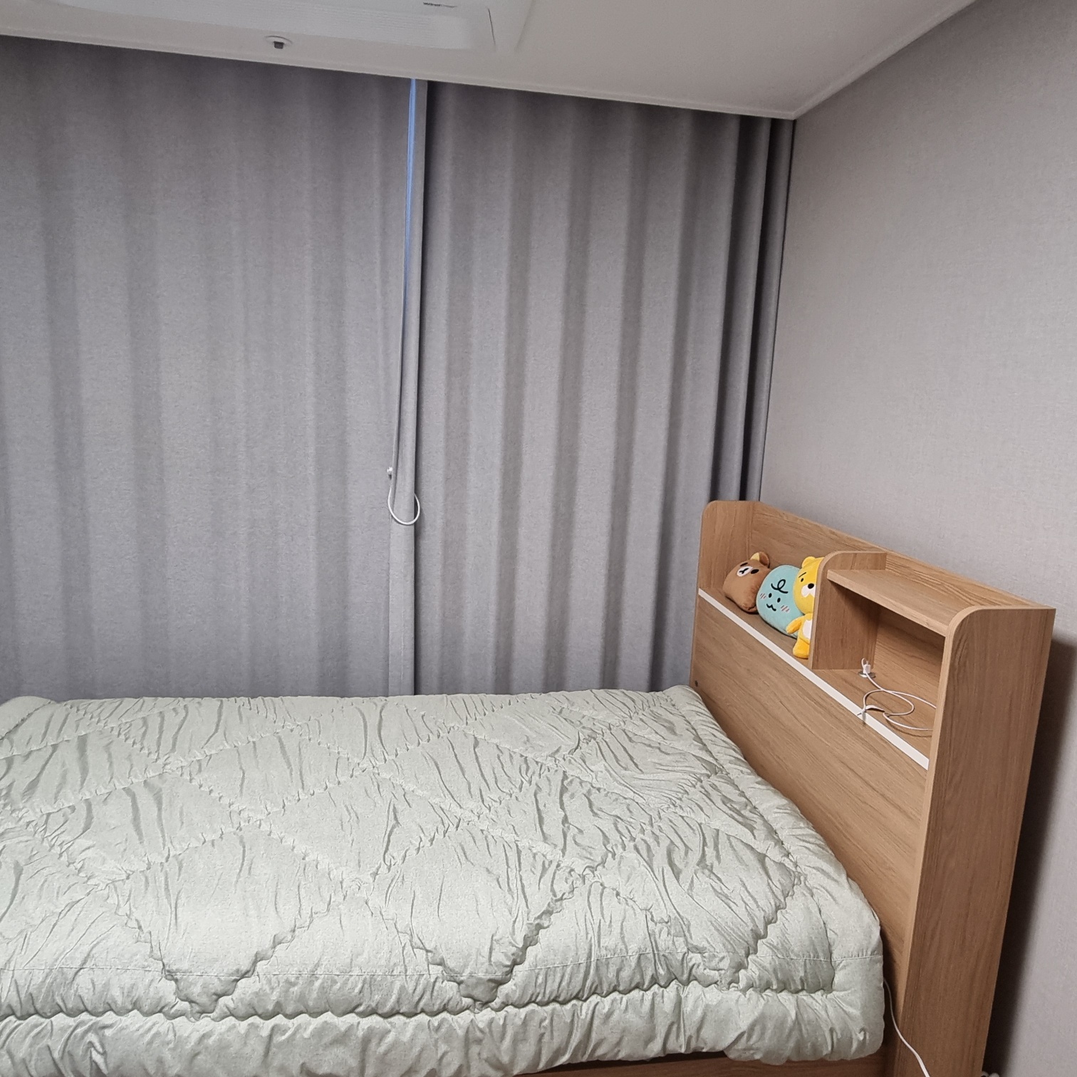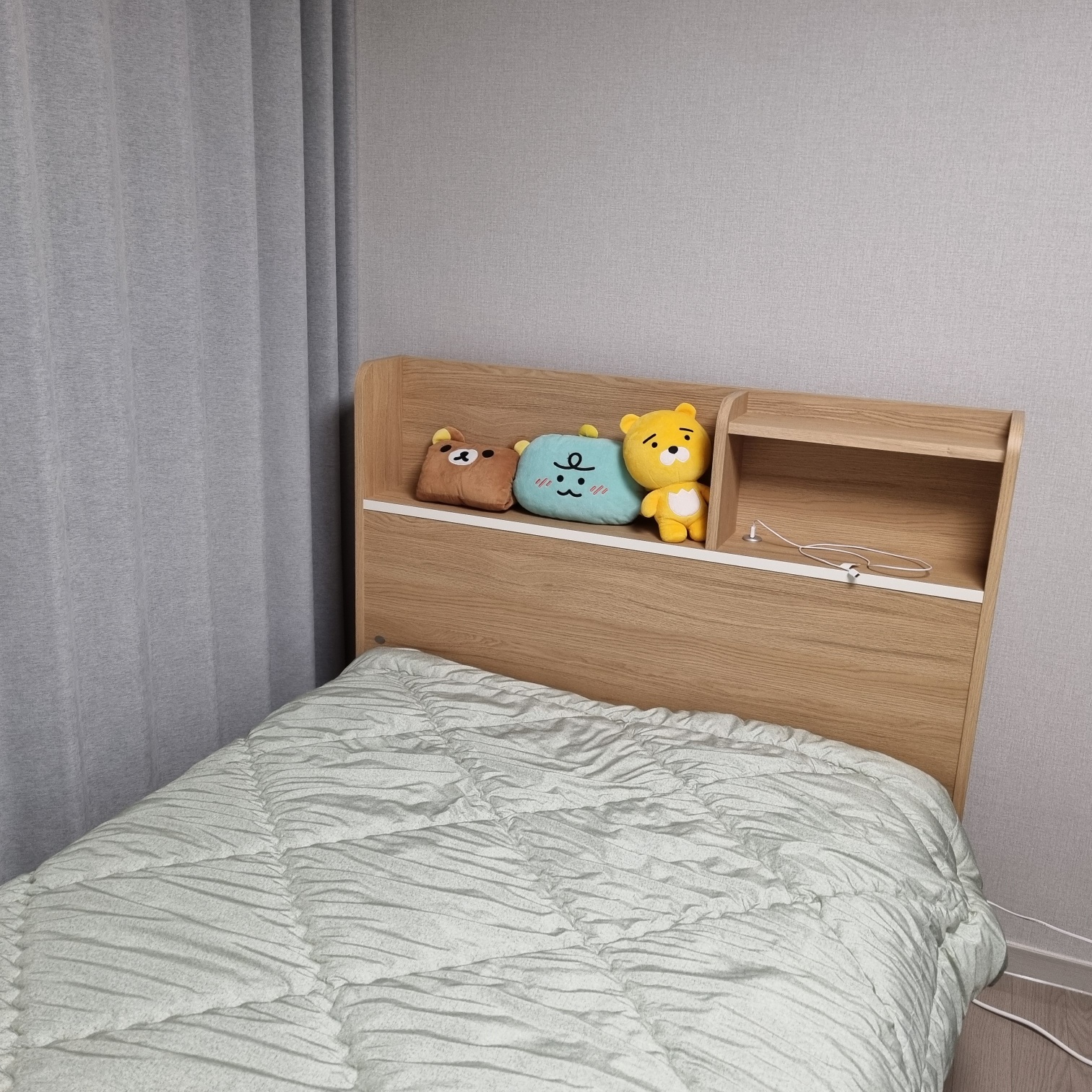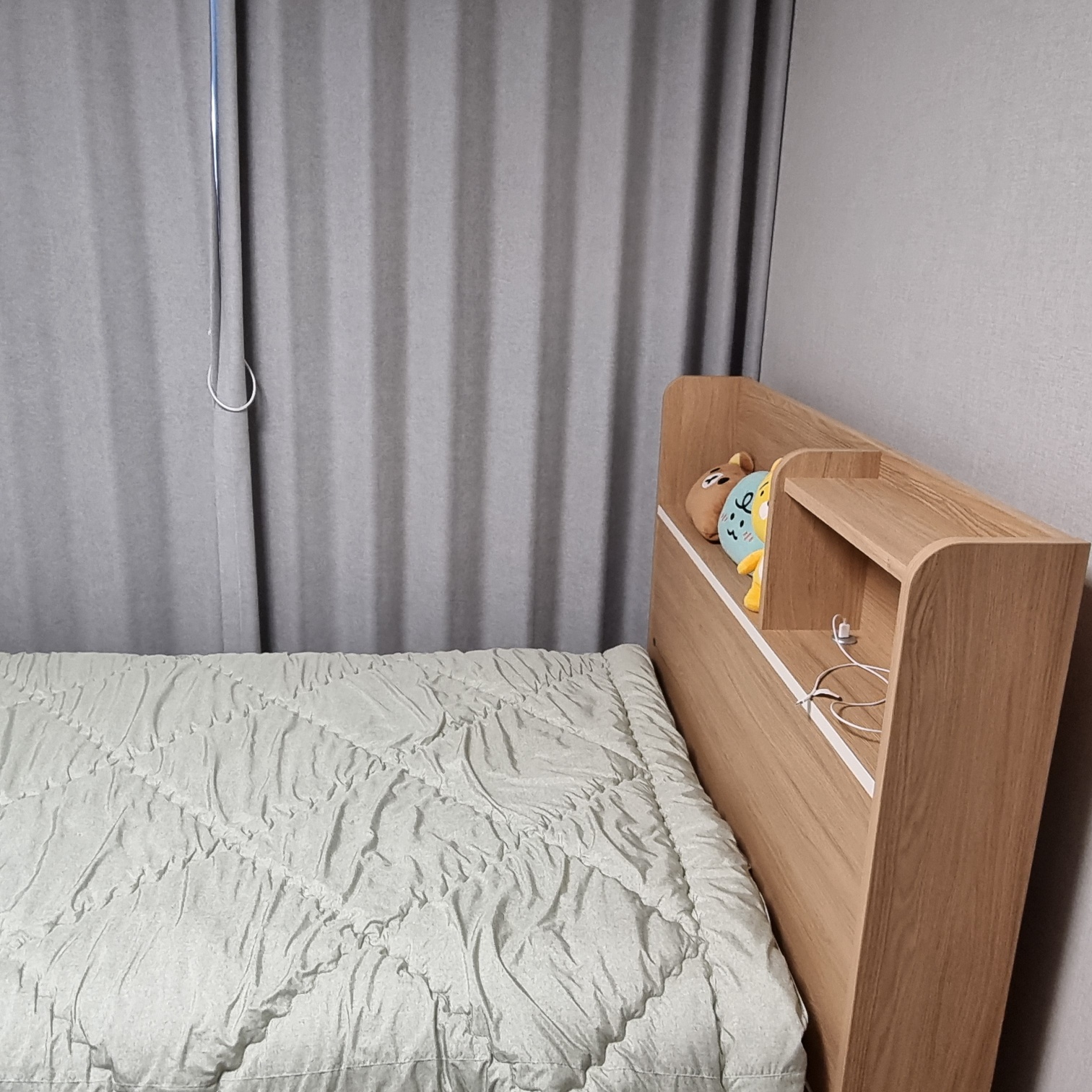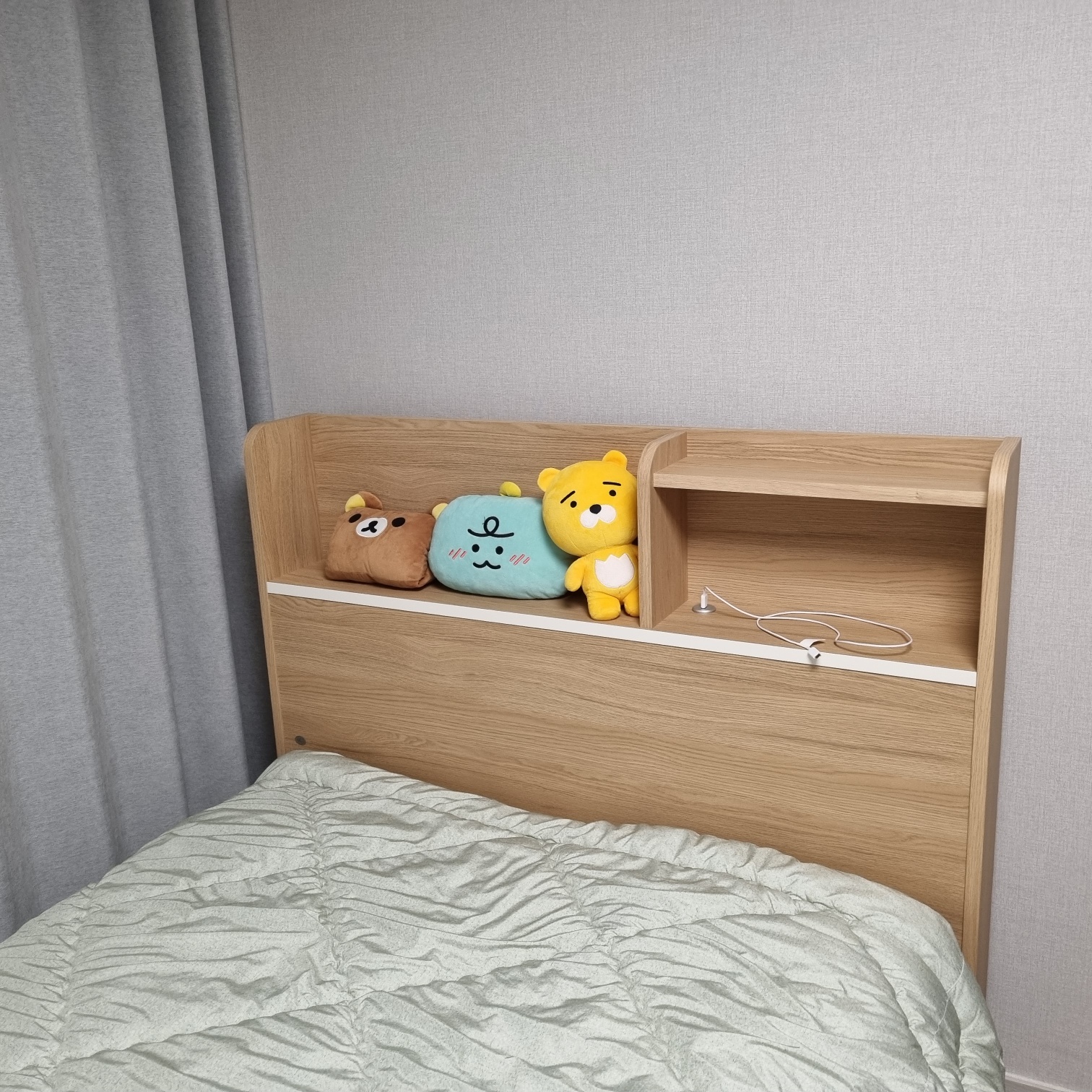 나무색이지만 너무 짙지 않고 따뜻한 우드색이라 방 분위기를 따뜻하고 아늑하게 만들어주는 것 같아요