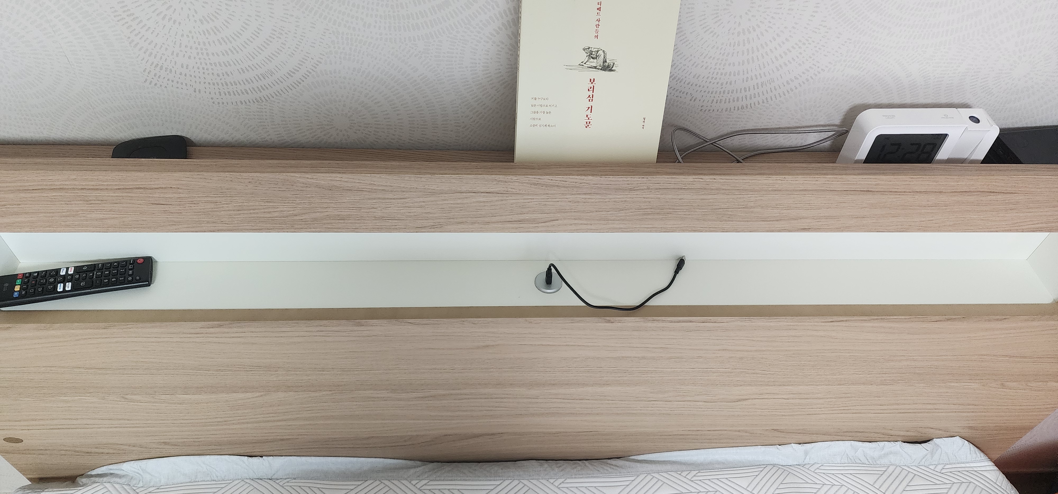 헤드에는 휴대폰 충전이 가능하고 리모컨,책 등을 보관할 수 있어 편리해요