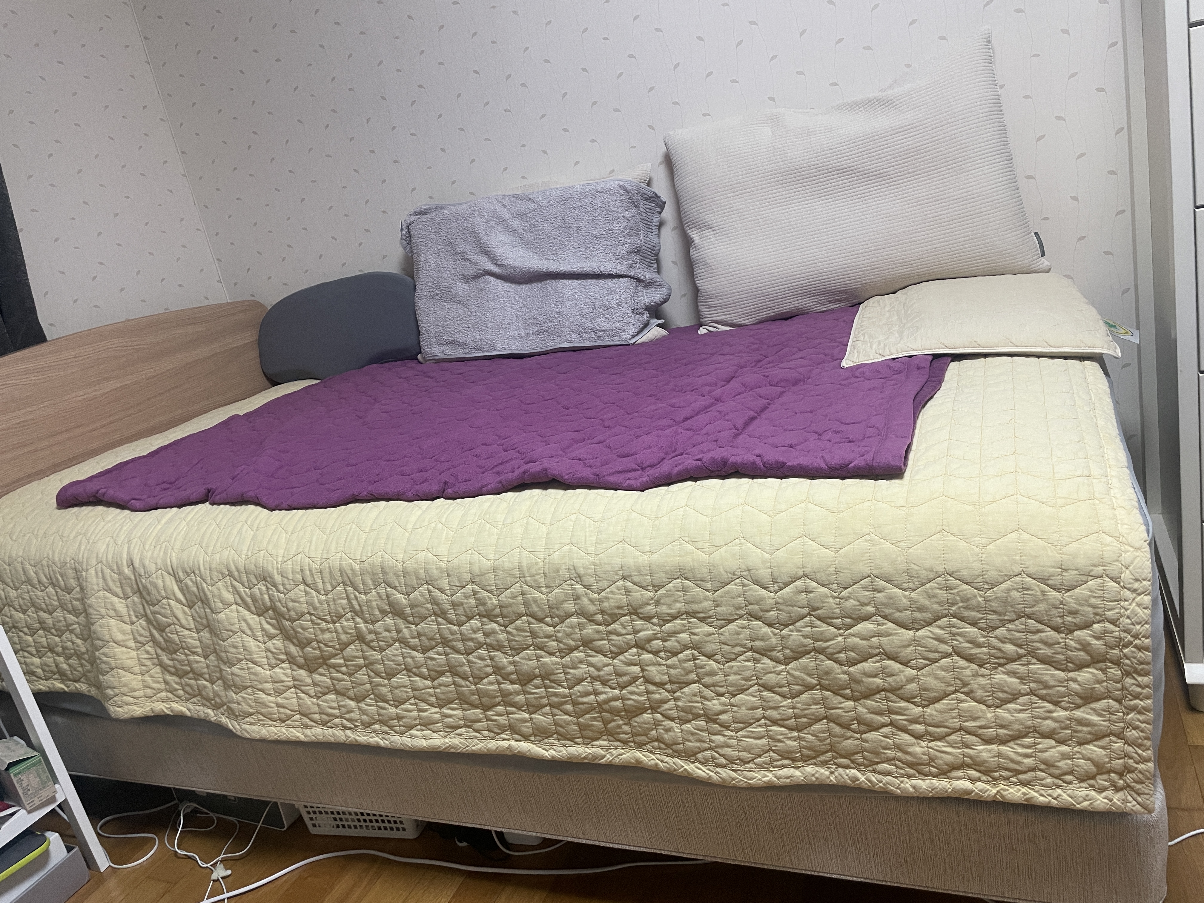 부모님 침대를 바꿔 드리는 김에 제 침대도 10년 이상 써서 같이 구매했어요. 잠자는 게 중요하다고 생각하여 매트리스를 하이브리드 테크 로얄로 구매했어요. 매트리스는 너무 편하고 좋은데, 높은 매트리스를 생각하지 않고 프레임을 조금 낮은 것을 해서 모양이 마음에 들지 않네요. 게다가 기존 에이스침대 아래 공간이 조금 있어 수납박스를 넣고 거기에 물건을 많이 넣었는데 이 제품도 밑에 공간에 있어 구매를 한건데 생각보다 너무 공간이 좁아서 수납박스는 사용하지 못해서 조금 아쉽네요.