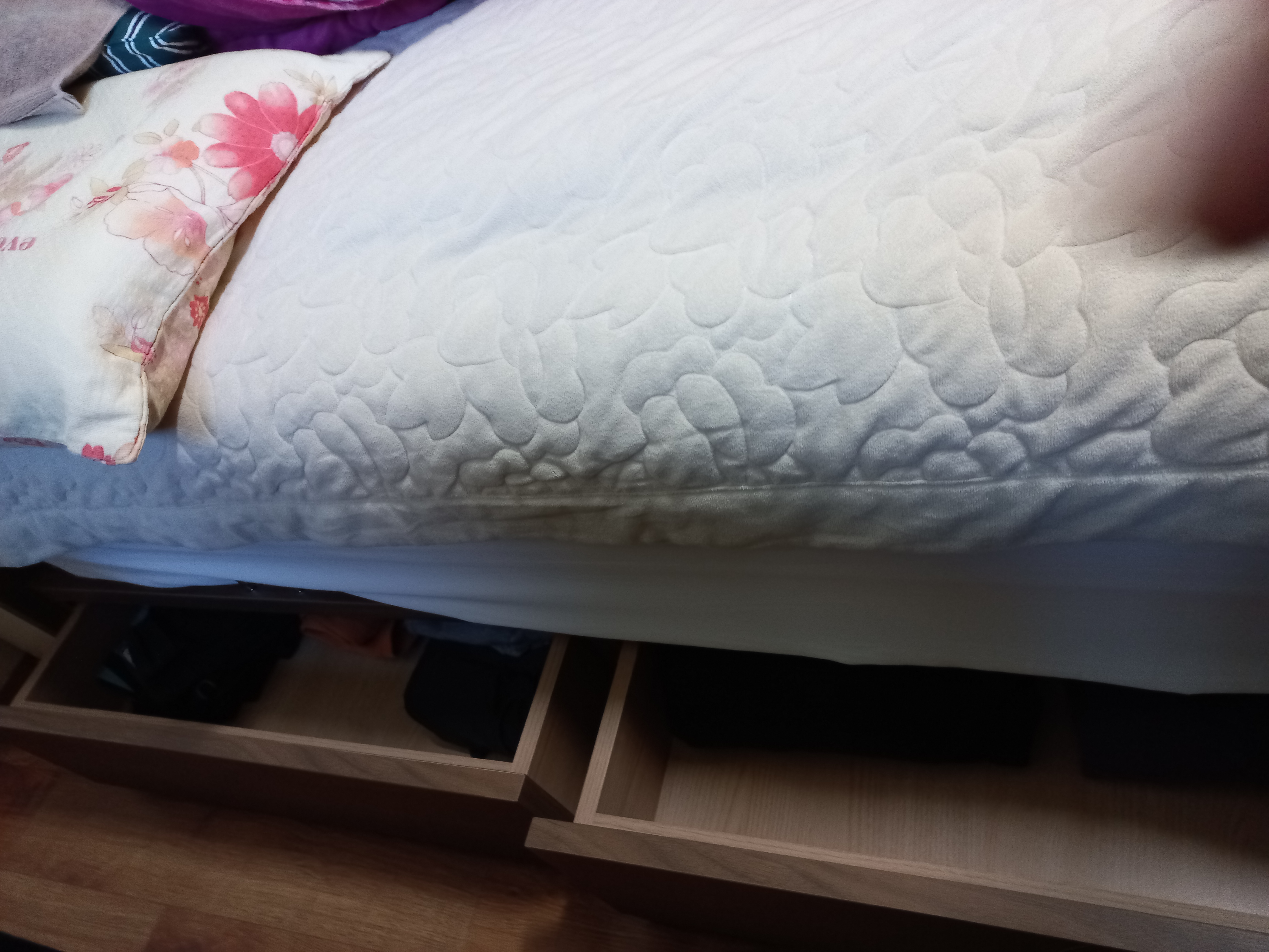 항상 방바닥에서 자다가 너무불편해서 아들들과 같이 매장방문해서 보고 고른 침대 프레임과 메트리스중 작은아들 꺼에요.
