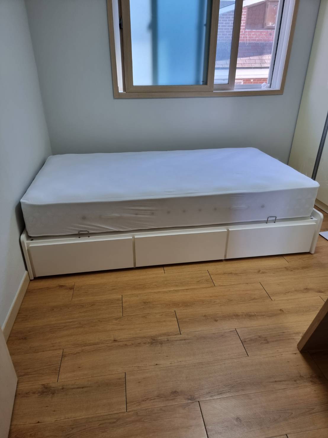 침대 아래 수납이 있으면 좋겠다 싶어 프레임에 수납기능이 있는 모델로 구매했습니다.