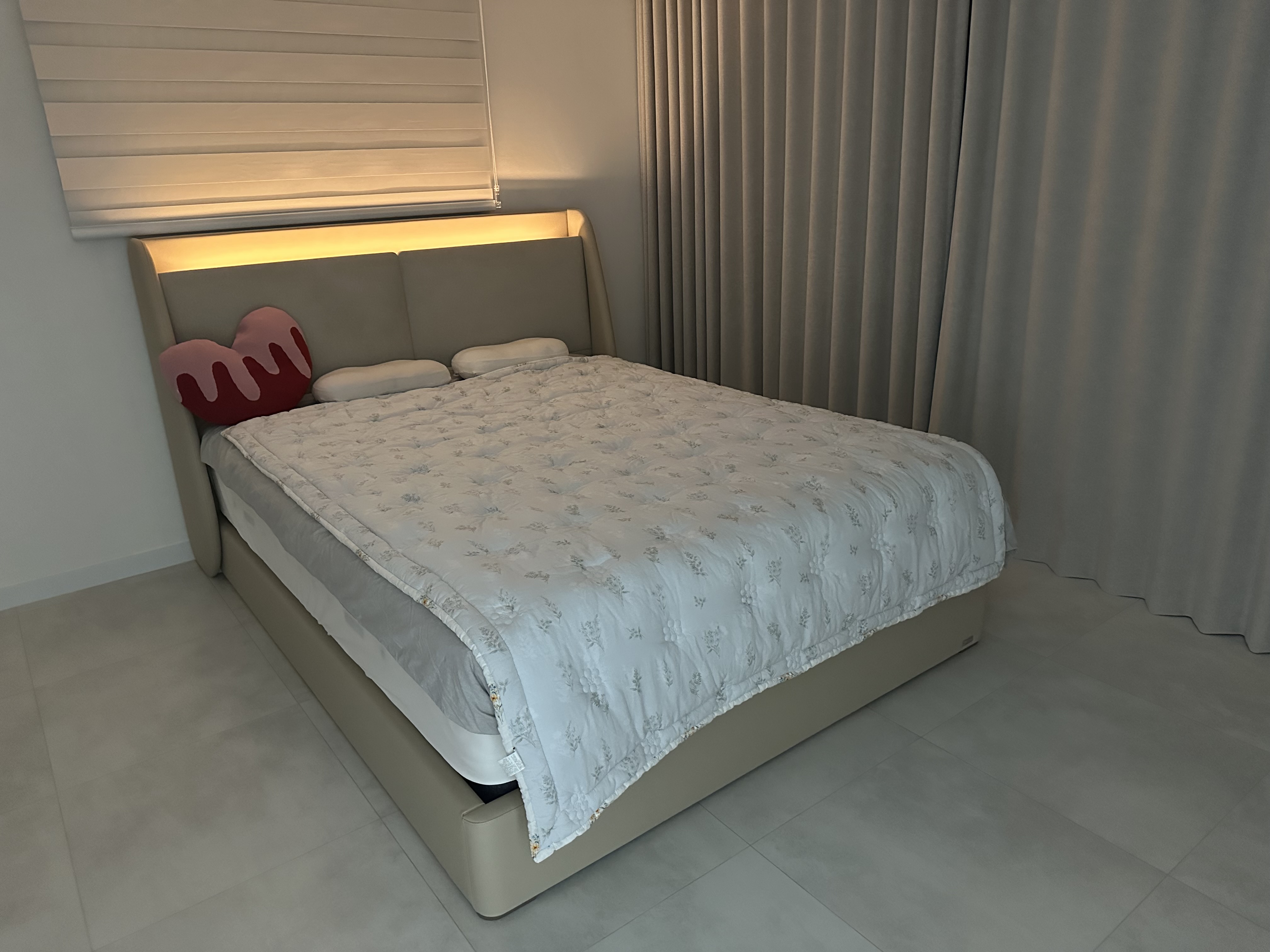그리고 루나토 4 프레임에 조명이 신혼방에 무드감을 주어 너무 좋네요~ 무드등 켜놓고 침대에서 책읽기도 너무 좋고요 . 또한 무드등옆에는 핸드폰 충전이 가능한 포트가 있어 완전 편리합니다!!! 핸드폰 충전은 기본이잖아요!! ㅎㅎ