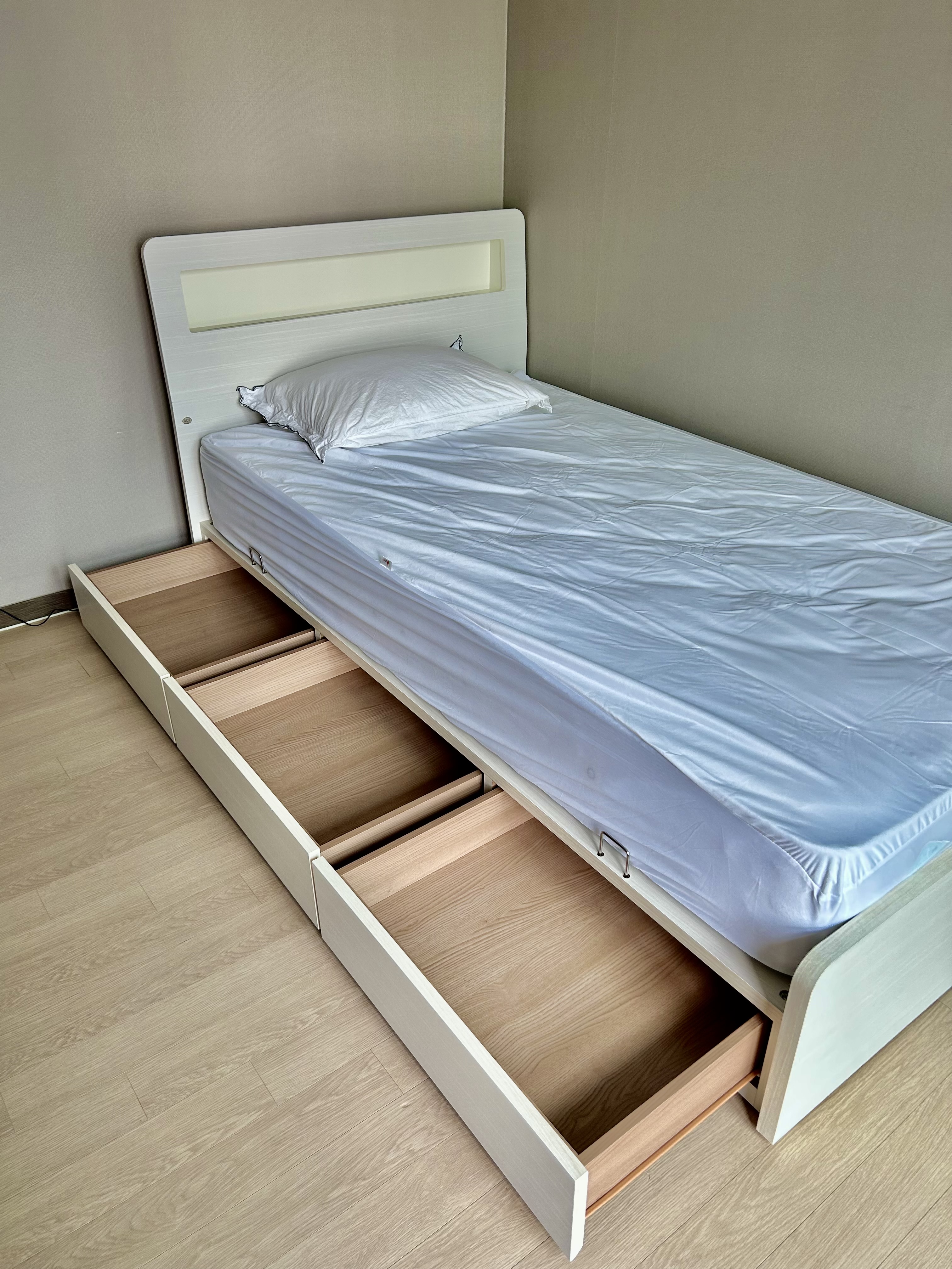 갑자기 망가져서 백화점에서 여러 브랜드 제품를 알아보고 한달동안 고민하다가 제일 맘에 드는 에이스 침대를 사게 됬다. 현재 고3 이제 대학생 되는 딸이 쓸거라 정말 고민을 많이 했다. 화이트 색상에 실용적인 서랍형 침대로 알아보다가 에이스침대가 제일 깔끔하고 튼튼해 보여서 선택했다. 아이보리 색상에 나무 결이 은은하게 있어 다른 가구랑도 잘 어울리고 서랍도 부드럽고 튼튼했다.