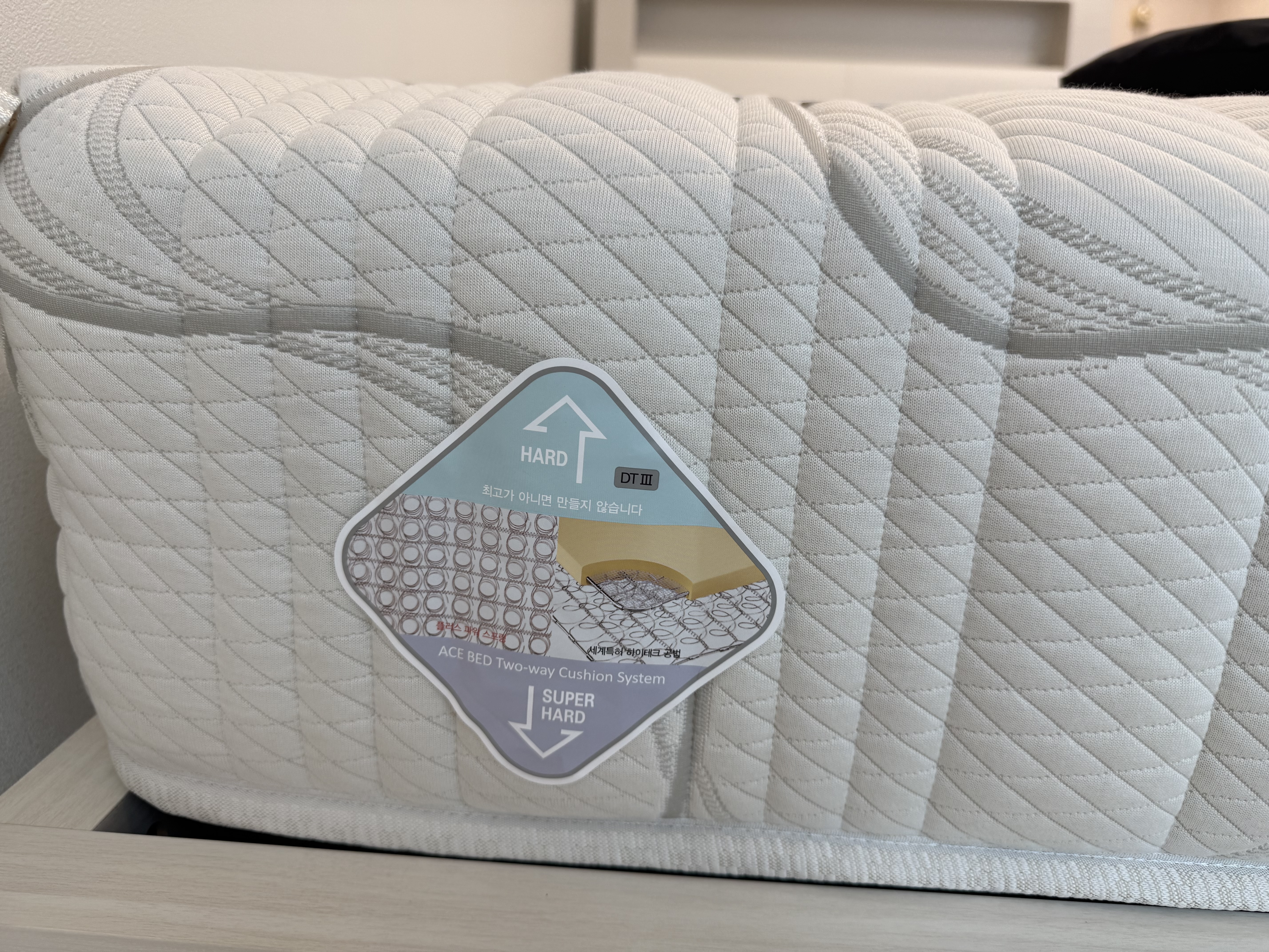 매트리스가 너무 푹신한 거는 싫었고 이리 누워보고 저리 누워보고 다른 곳 갔다가 다시 들어가서 또 누워보고 엄청 고민해서 고른 제품입니다.