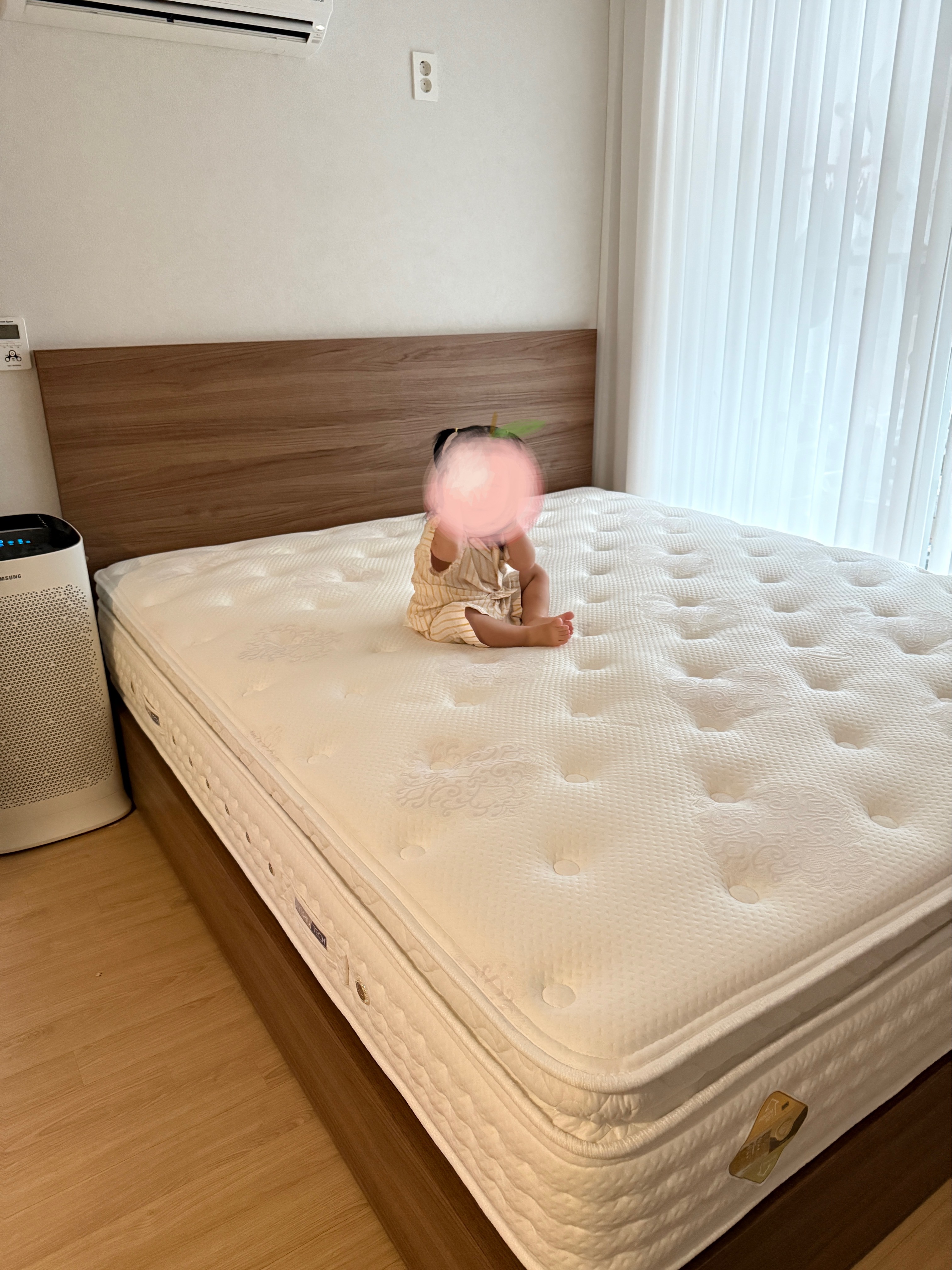 2016년에 구입했던 타사 프레임이 망가져 매트리스만 사용하다가, 이번에 기존 킹사이즈보다 더 큰 사이즈로 업그레이드하고 싶었어요. 안방이 좁아 라지킹과 더블킹 사이에서 고민했지만, 결국 라지킹으로 결정했습니다. 루체 3과도 고민했지만, 고급스러우면서도 실용적인 국민 프레임을 선택했고, 매트리스는 직접 누워보고 체험한 후 하이브리드테크 레드(소프트)로 골랐습니다. 소프트 타입이라 몸의 곡선을 자연스럽게 받쳐주어 허리가 편안하고, 옆으로 누워도 베개 없이 충분히 안락했어요. 허리가 아프면 무조건 하드한 매트리스를 써야 한다는 편견이 사실과 다르다는 걸 직접 느꼈습니다. 안방 공간과 체형을 모두 고려한 선택이라 만족도가 높습니다.