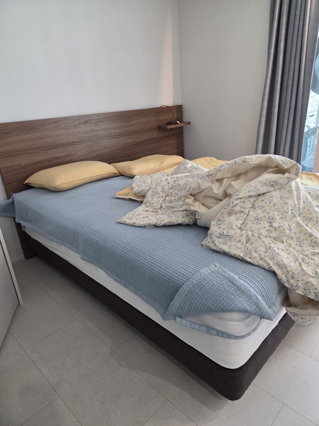 킹사이즈로 선택한 건 정말 잘한 것 같아요. 여유로운 공간 덕분에 뒤척여도 흔들림이 적고, 혼자 자든 둘이 자든 넉넉해서 좋습니다. 프레임 BMA1148-N도 심플하고 미니멀한 호텔형 디자인이라 어떤 인테리어에도 잘 어울리고 질리지 않아요.마감도 깔끔하고 튼튼해서 오래 사용할 수 있을 것 같습니다.