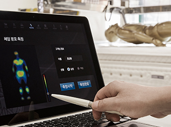 체압 분포 측정기는 사람이 누웠을 때 접촉면에서 발생하는 압력의 분포를 전자센서로 측정, 가장 이상적인 체압분포를 나타내는 매트리스를 선정해주는 시스템입니다.