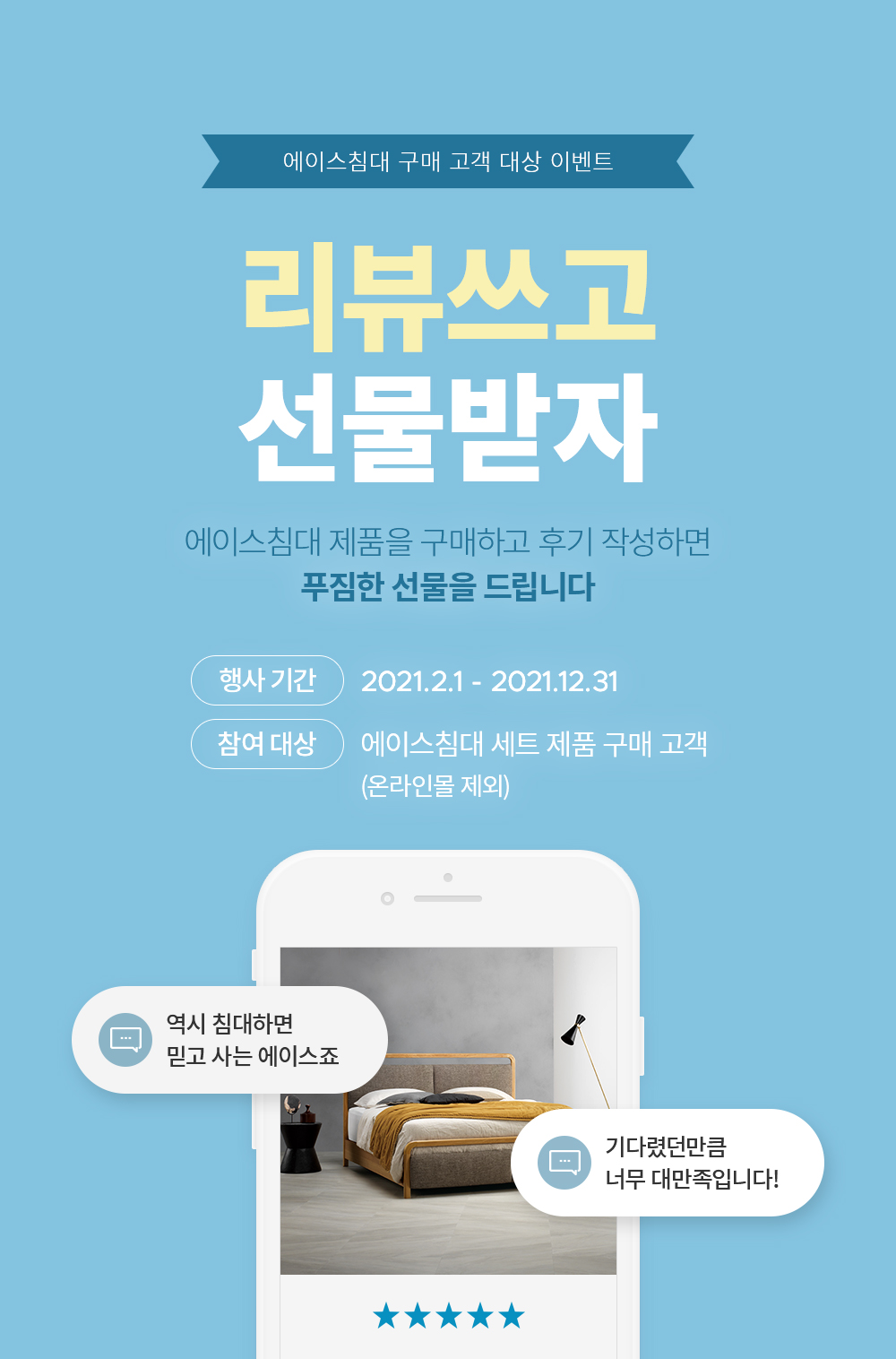 에이스침대 구매 고객 대상 '후기 작성 이벤트'