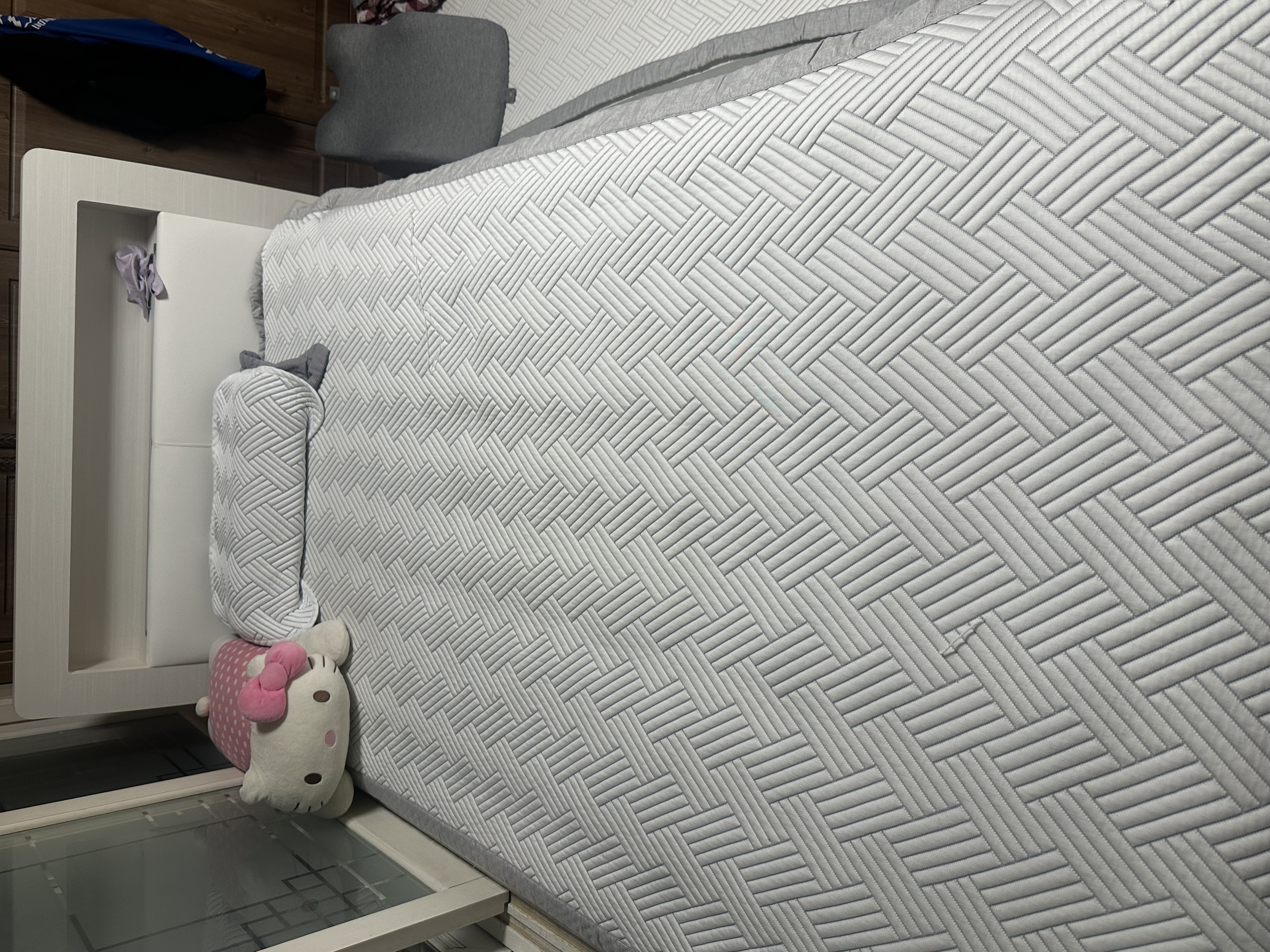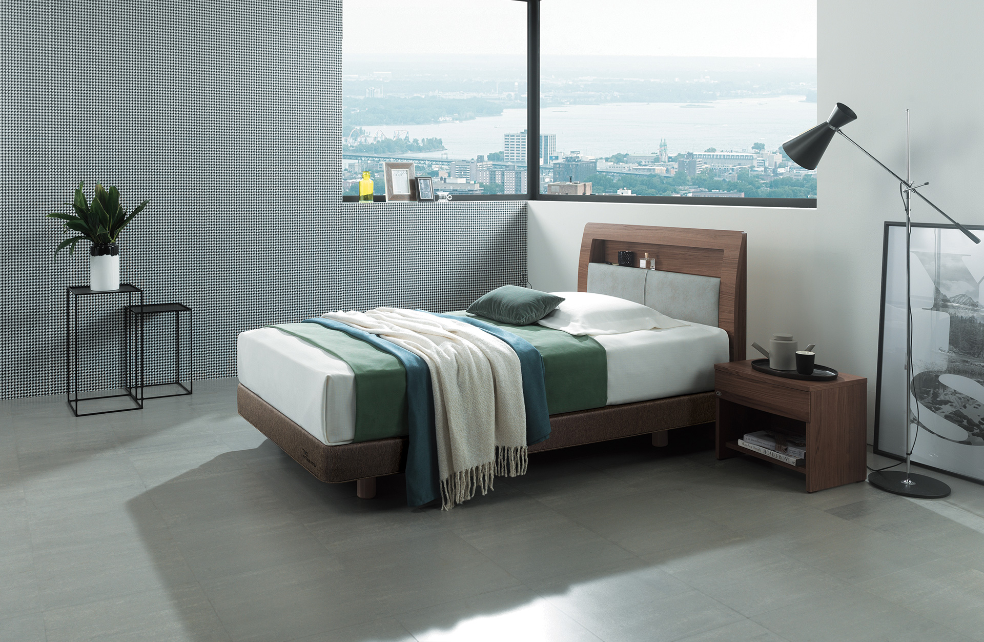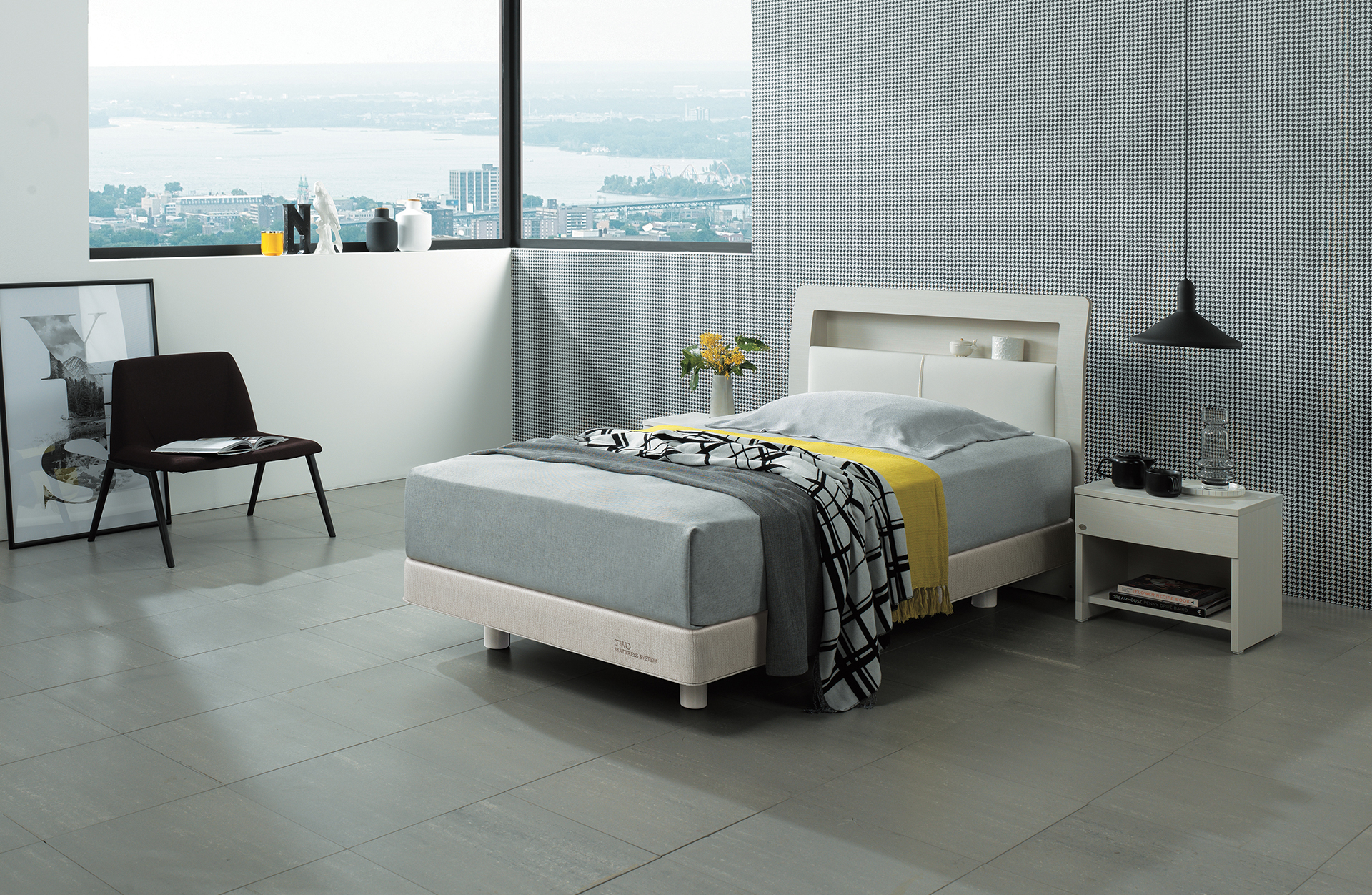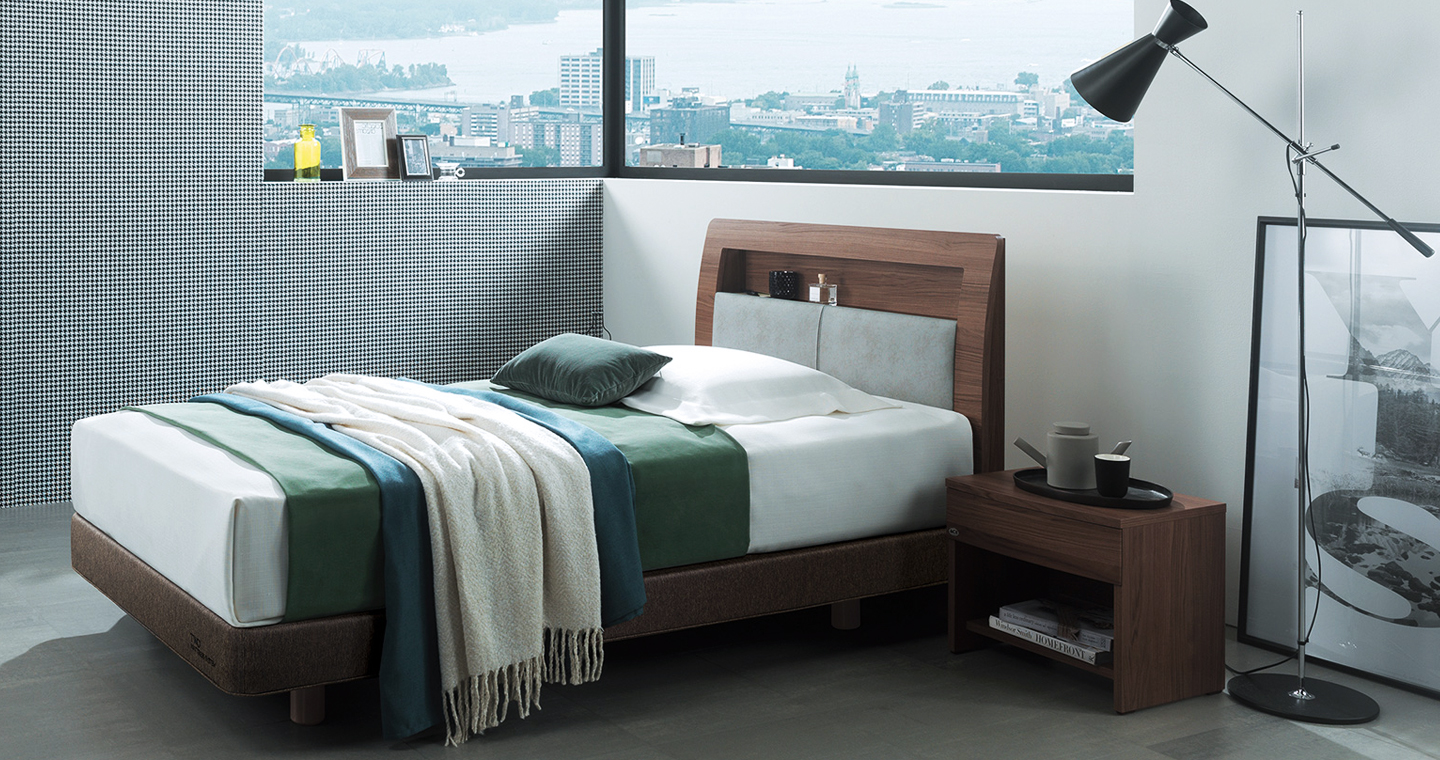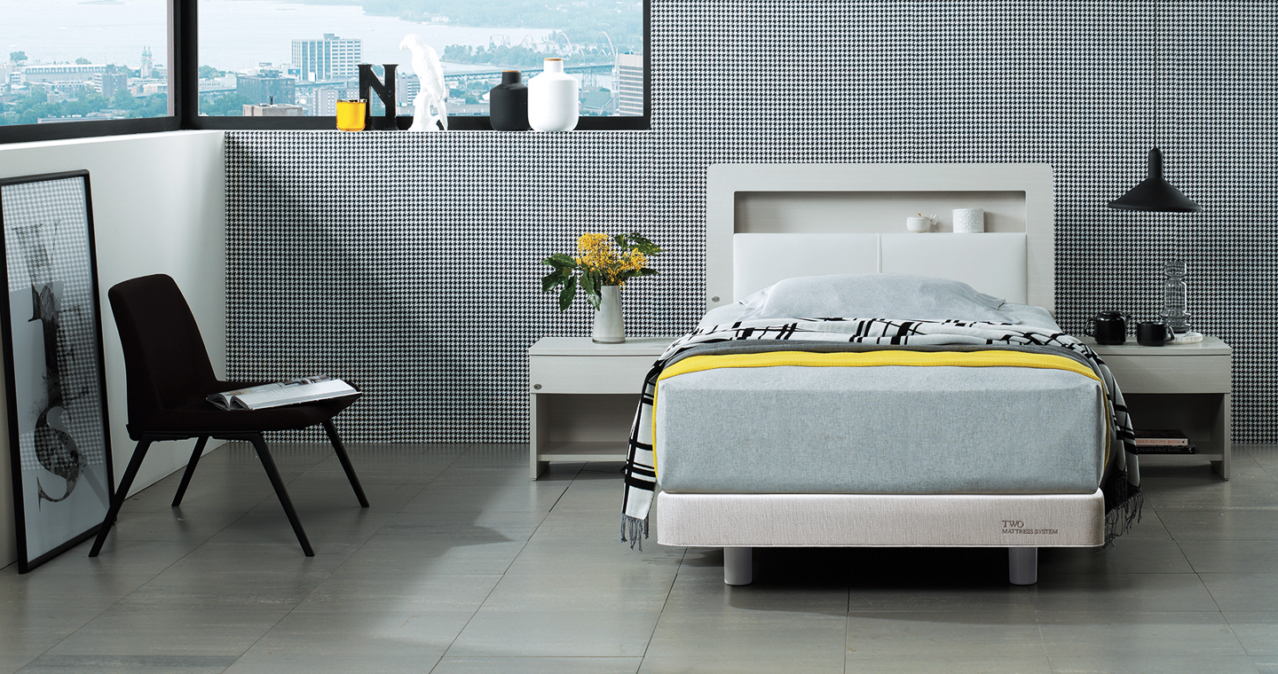 마일드한 월넛 컬러와 가죽질감이 조화로운 침대입니다. 헤드보드에 기대어 앉을 수 있는 기능성과 수납공간이 있는점이 특징으로 헤드보드에 고주파 벤딩 공법이 적용되어 침대에 기대어 앉을 때 편합니다. 또한 라이트 그레이 색상의 스마트 레더가 부드럽고 포근한 느낌을 줍니다. 헤드보드 상부에는 수납공간이 있어 안경, 핸드폰 등의 간단한 물건을 수납하기 편리합니다. 편안한 느낌의 월넛 컬러 우드 결은 고급스러우면서도 내추럴한 침실을 완성시켜 줍니다. 투 매트를 적용하여 에이스 침대만의 안락함을 느낄 수 있습니다.