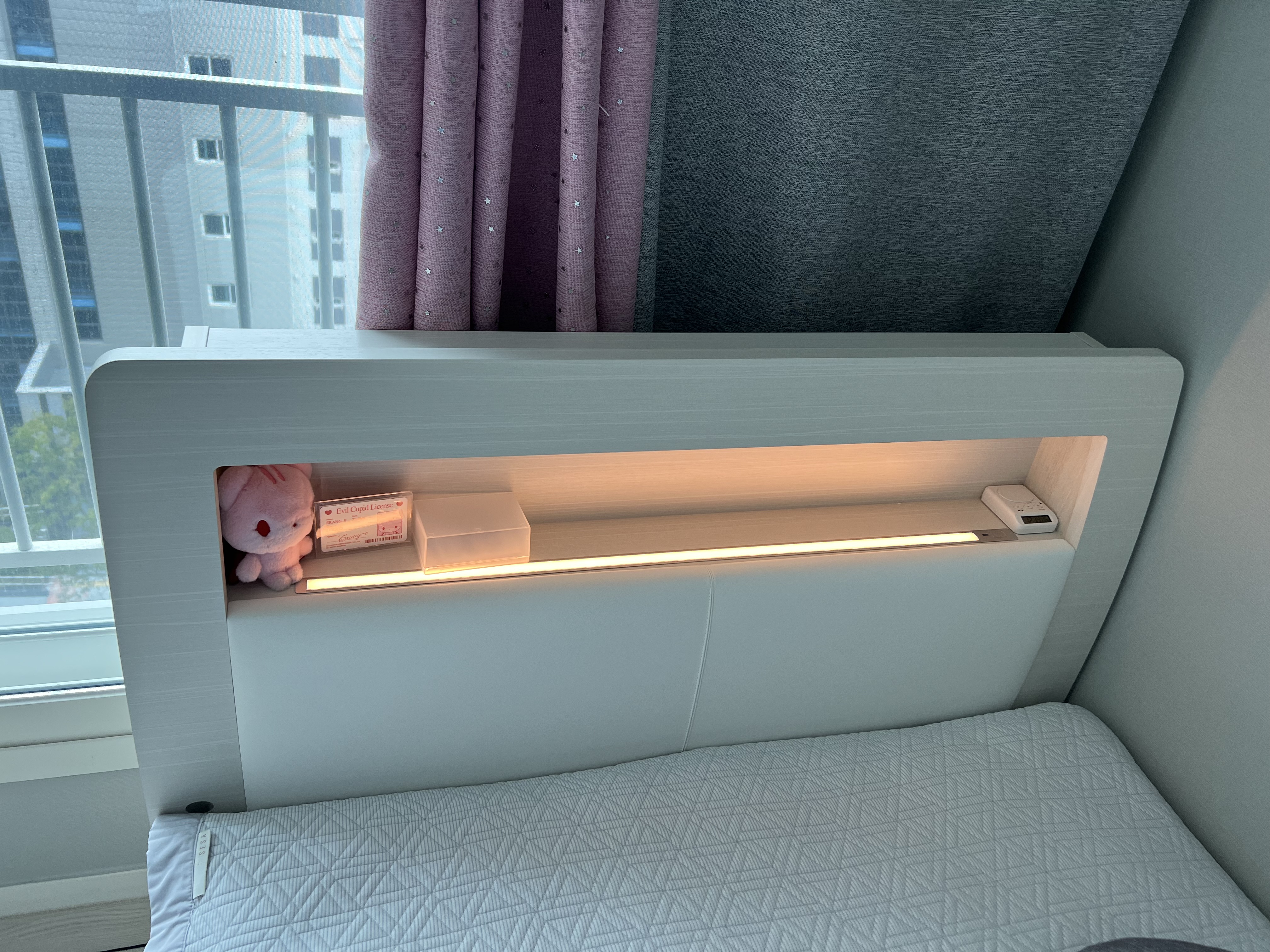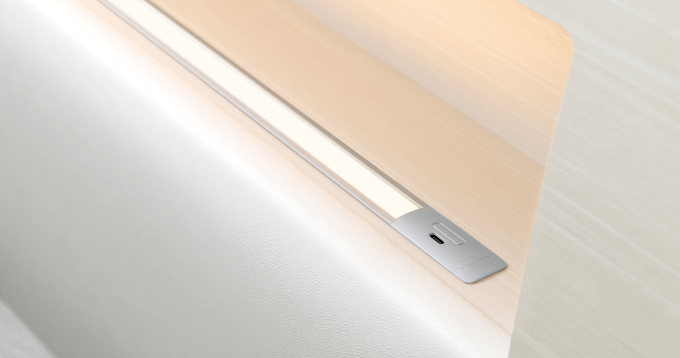 헤드보드 상면에 C타입 USB 충전포트가 탑재되어 있으며 실용적인 무드램프가 적용되어 있습니다.