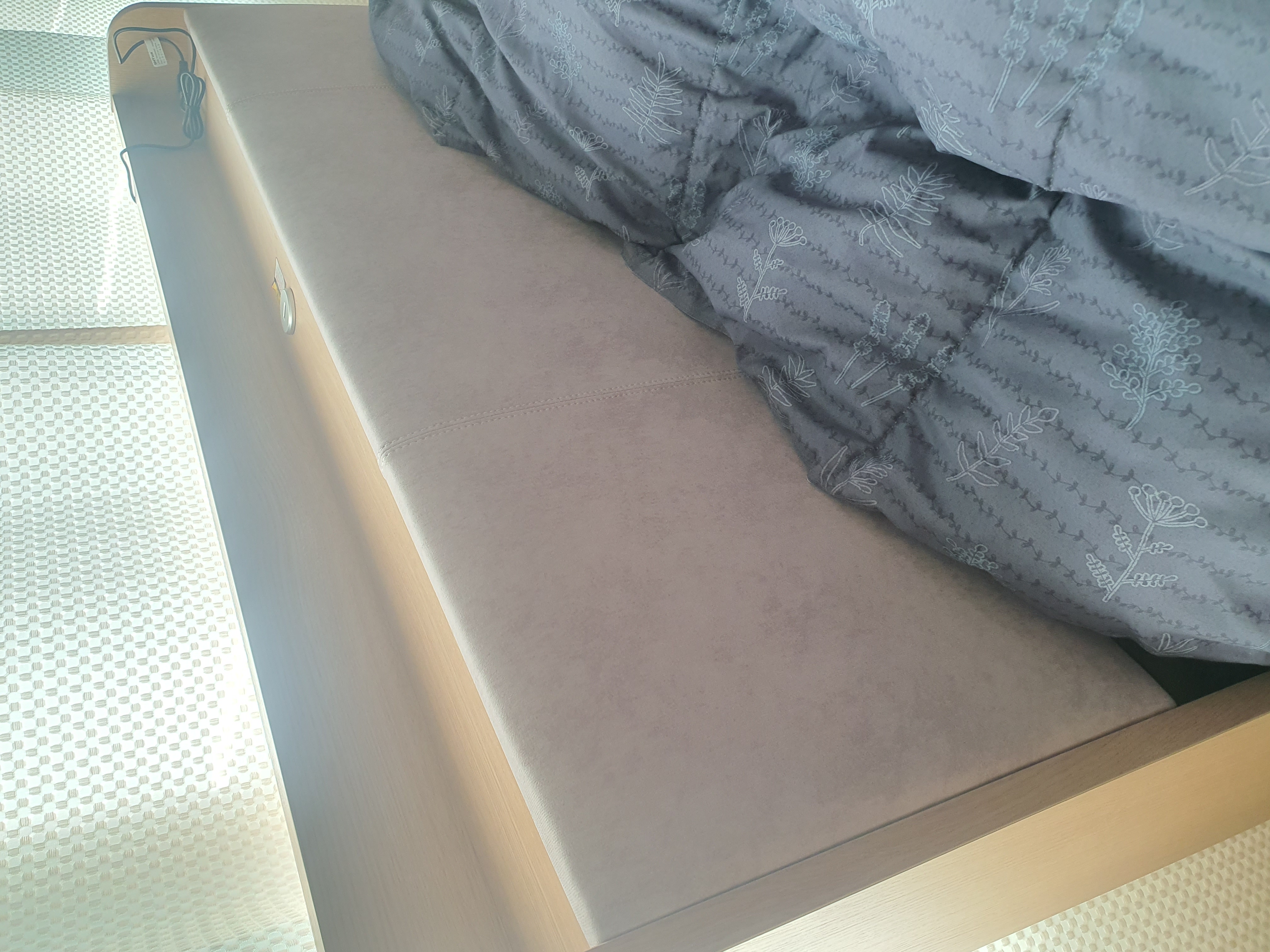 스마트 레더 헤드보드가 있어 부드럽고 포근한 느낌을 줍니다.