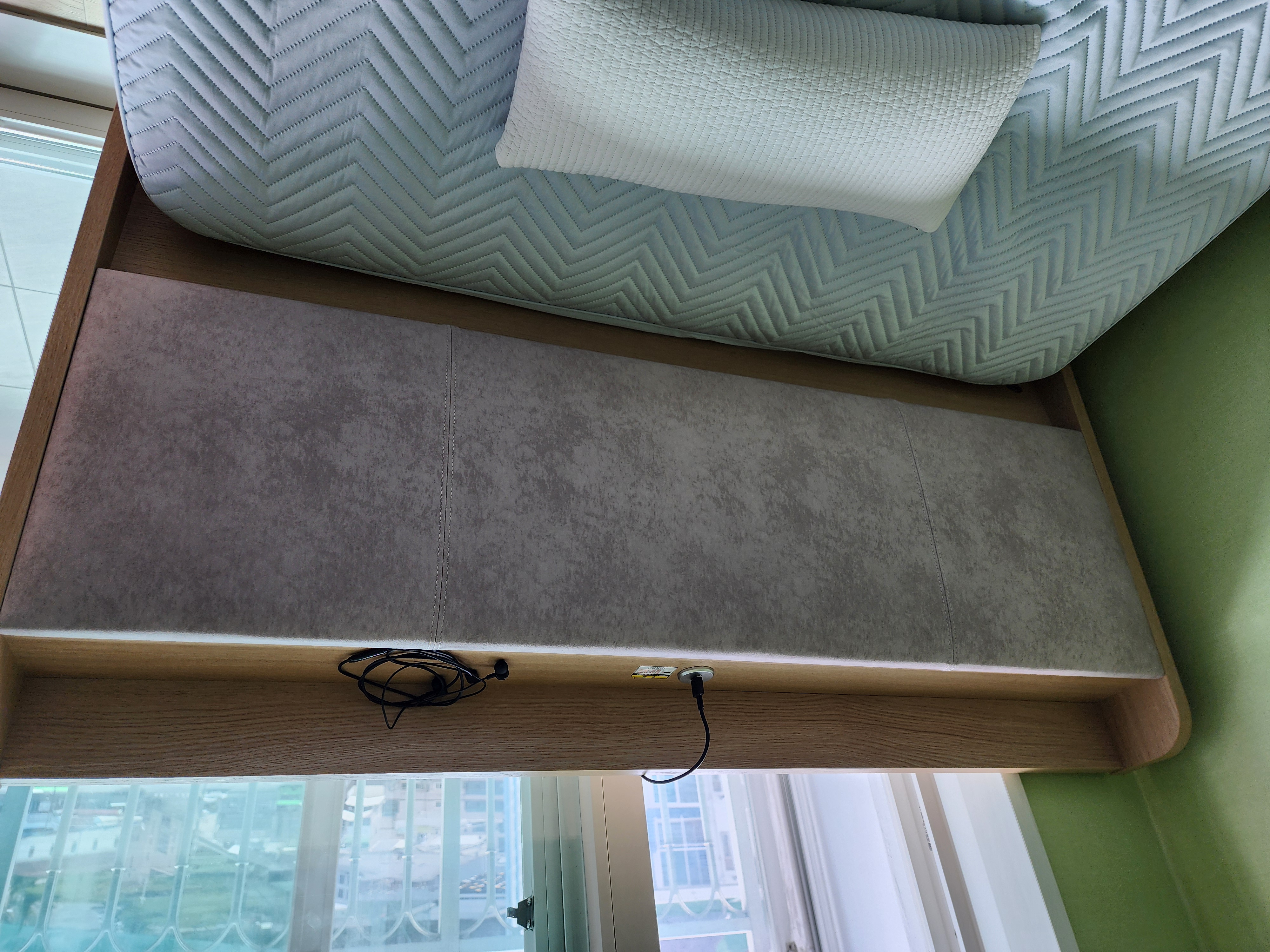 상부에는 수납공간이 있어 안경, 휴대폰 등 간단한 물건을 수납하기 편리합니다.