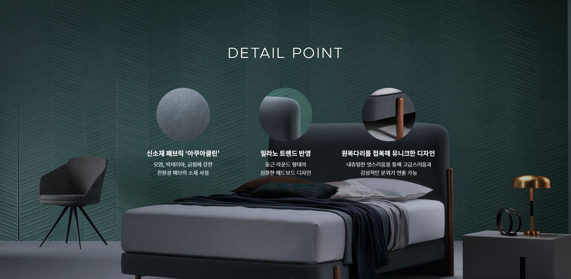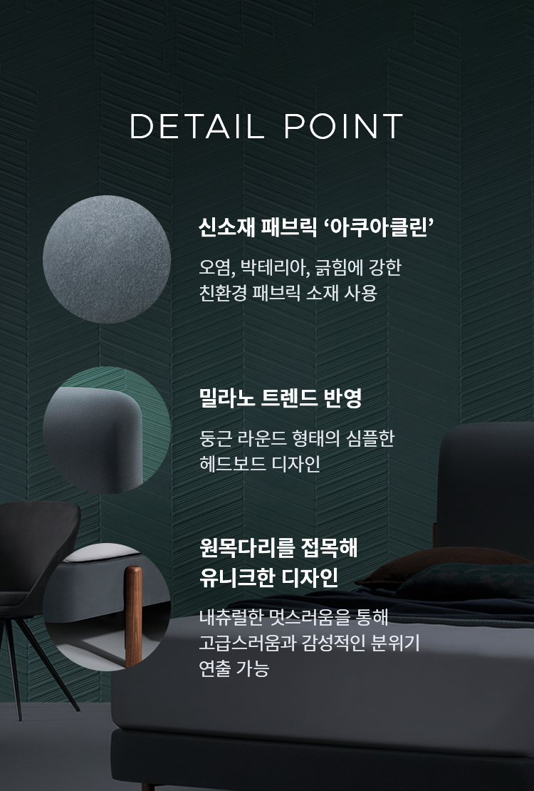 밀라노 트렌드를 반영한 둥근 라운드 형태의 심플한 헤드보드와