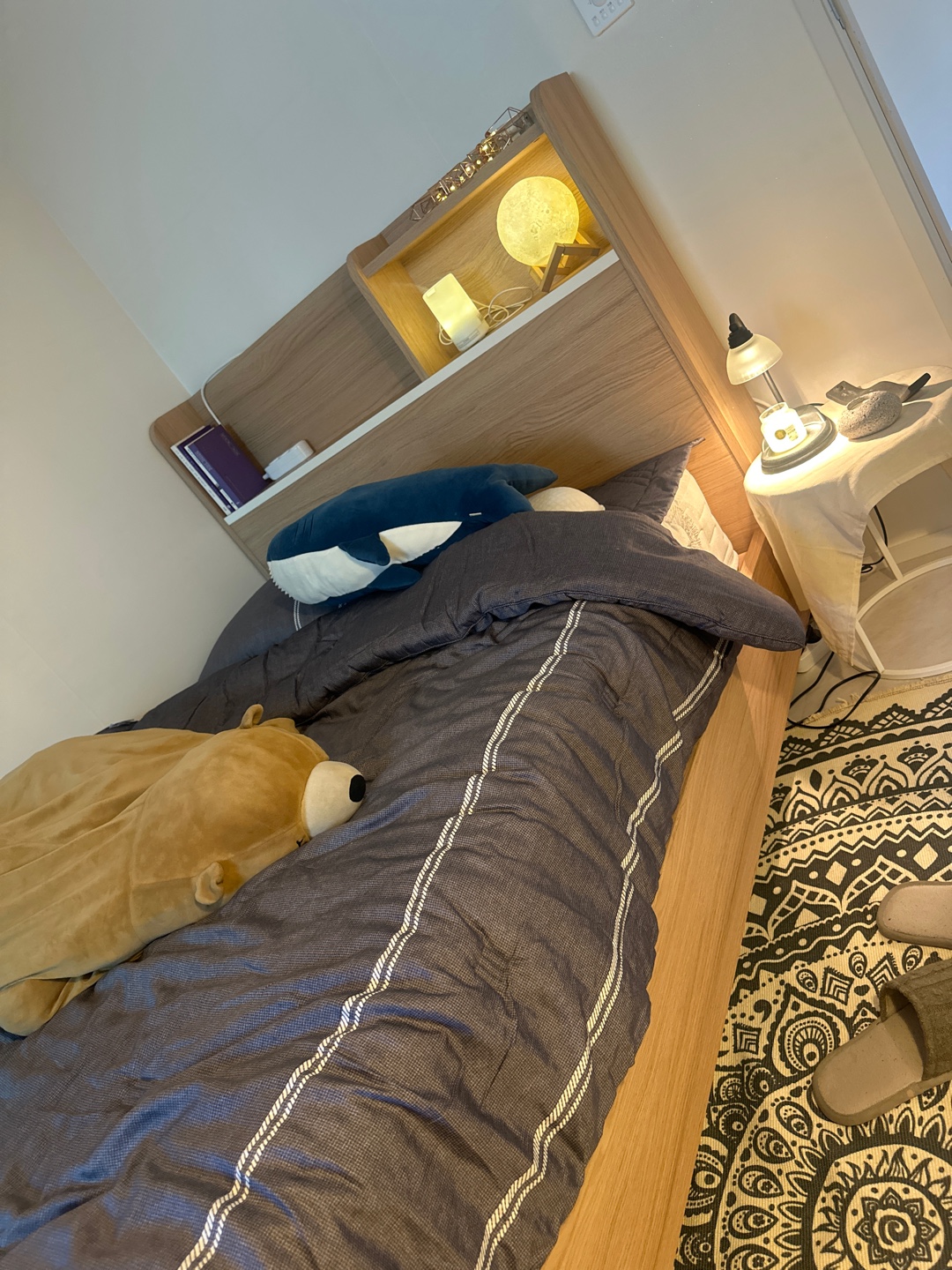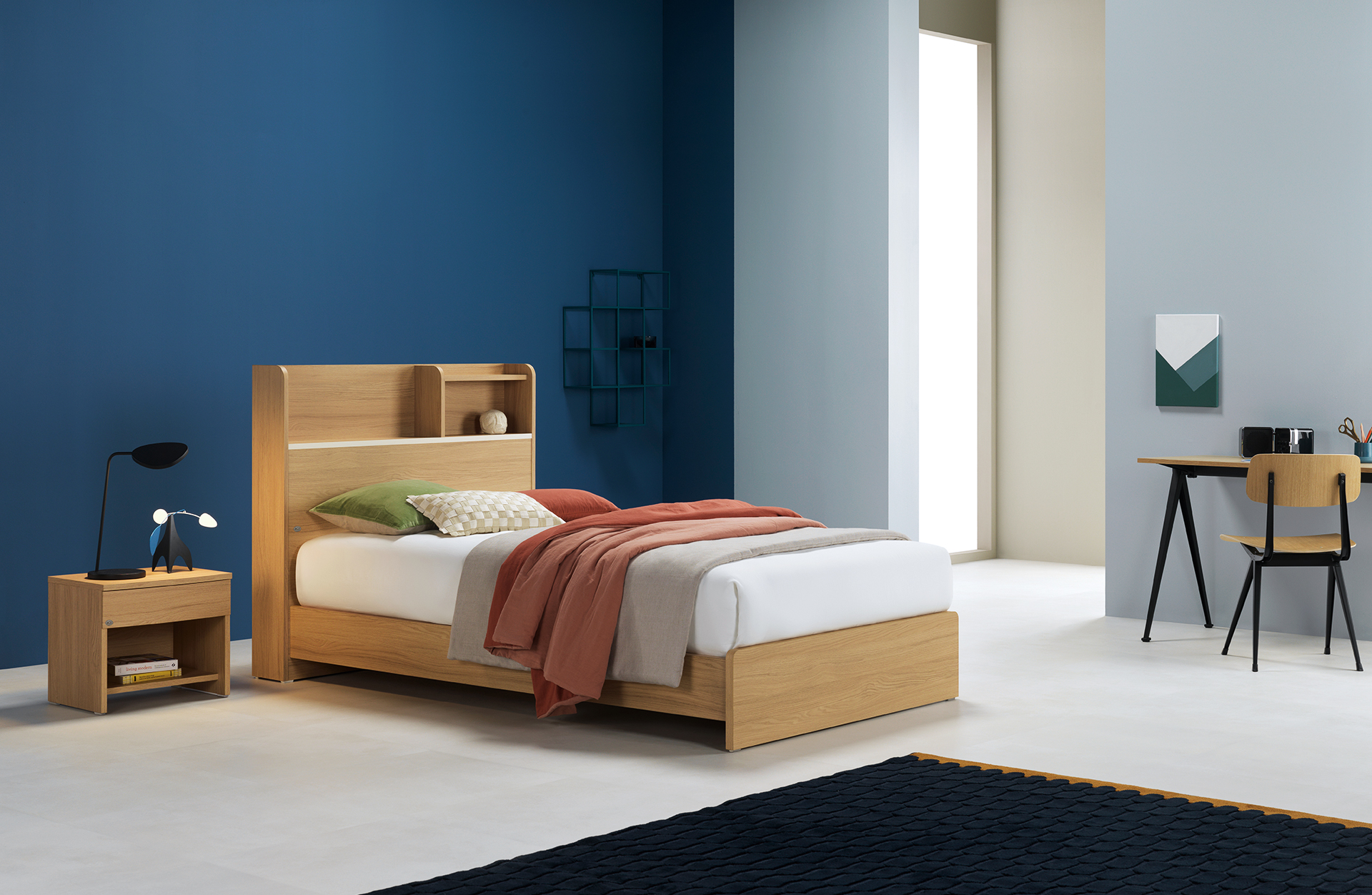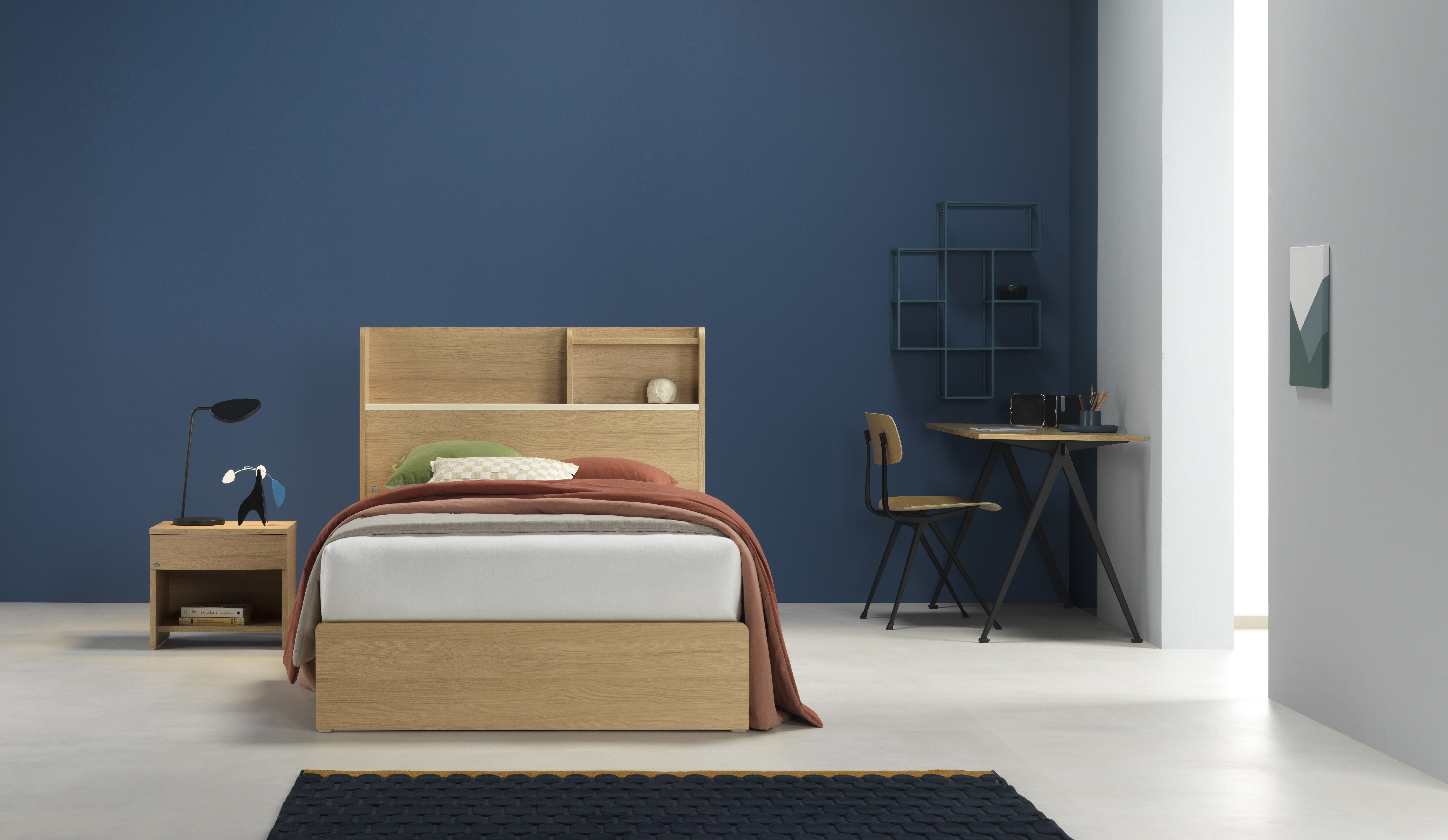 이러한 헤드보드의 넉넉한 수납공간은 다양한 크기의 책과 소품 등의 수납이 가능하며,