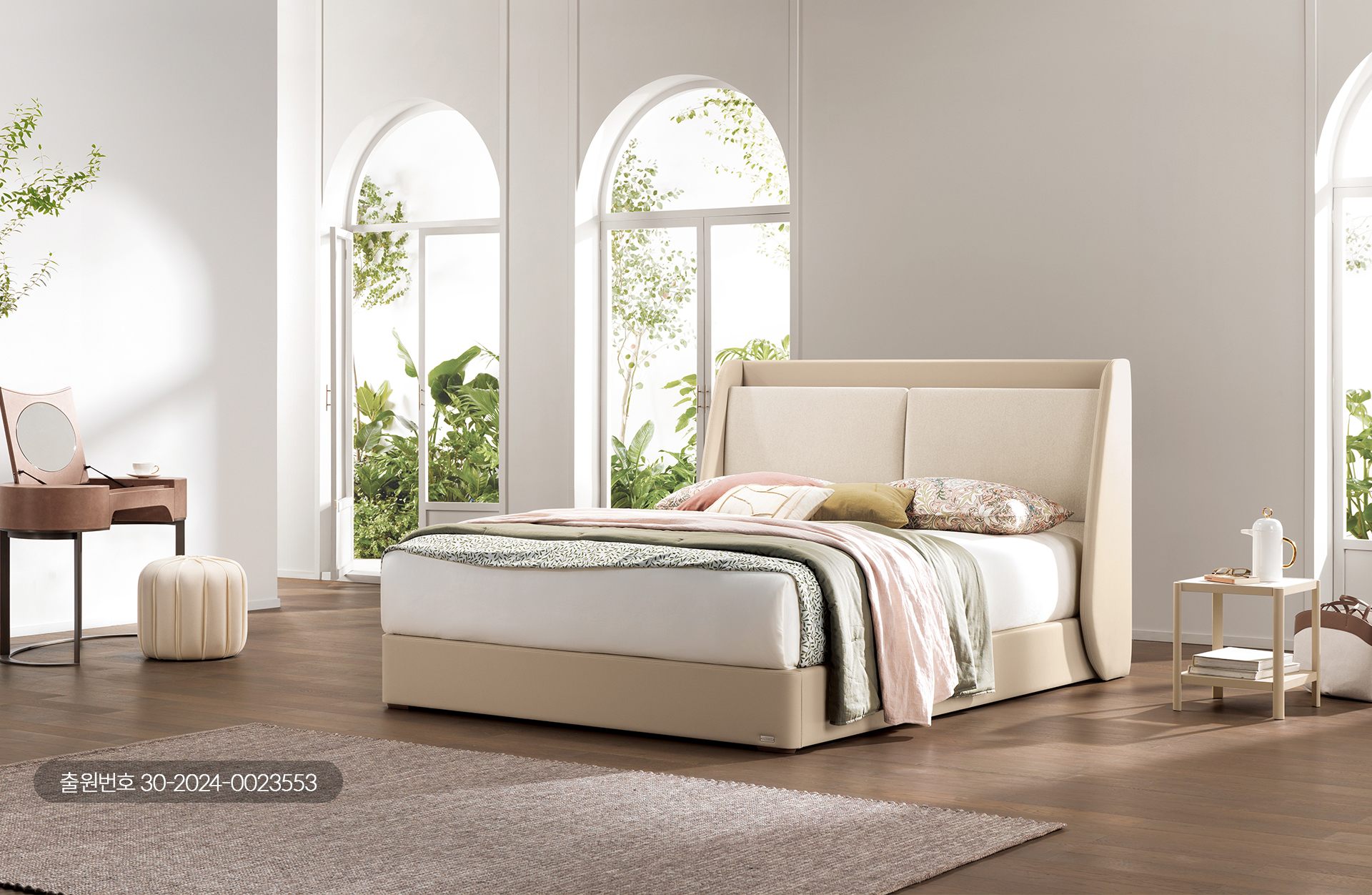 곡선형 날개와 풍성한 쿠션 볼륨이 어우러져 엘레강스한 분위기를 자아내며,