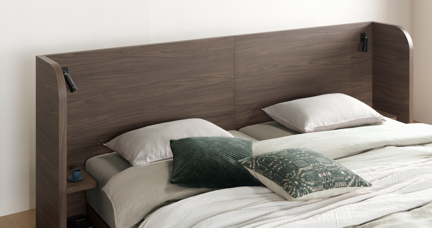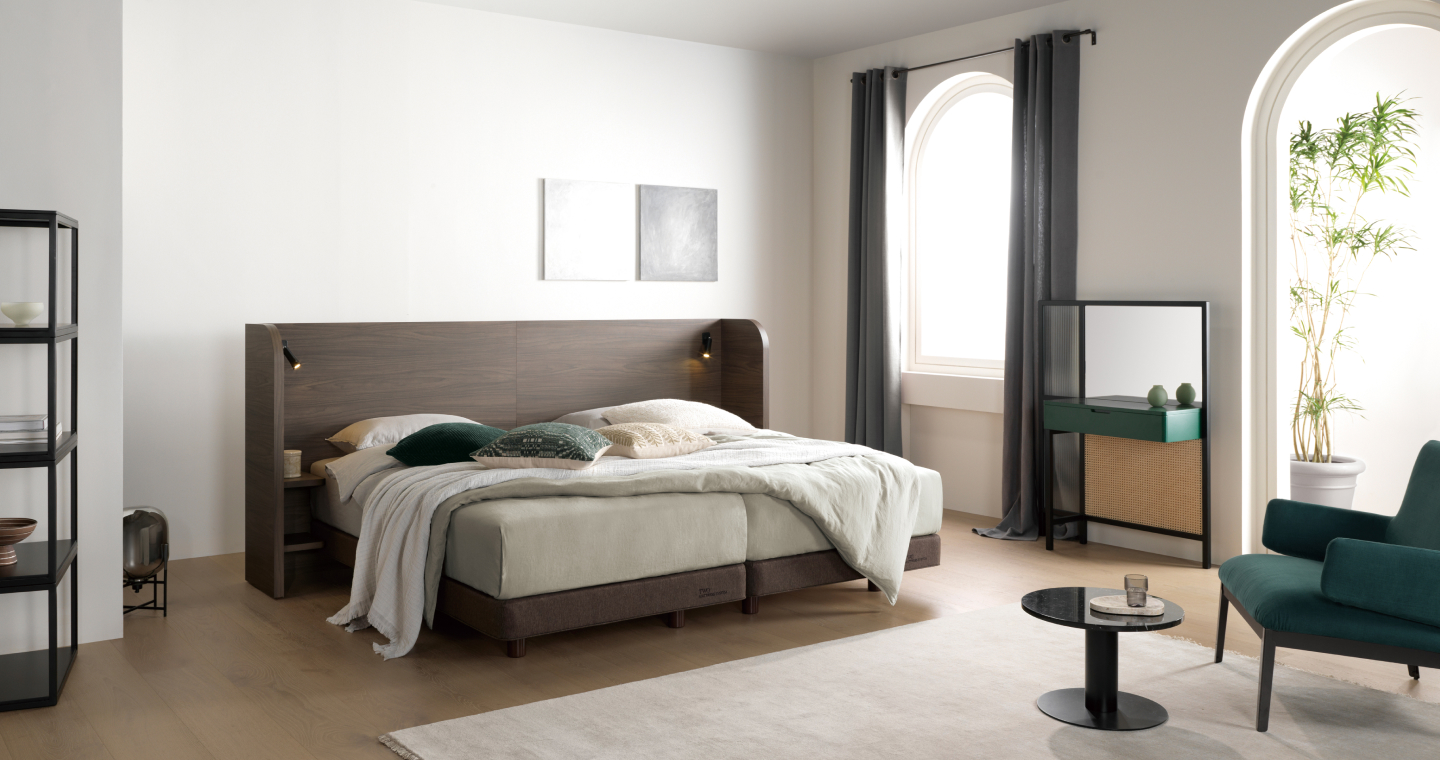 N타입 투매트리스 시스템이 적용 가능하며, 트러플 월넛 컬러로 고급 호텔에 온 것 같은 안락함을 느낄 수 있습니다.