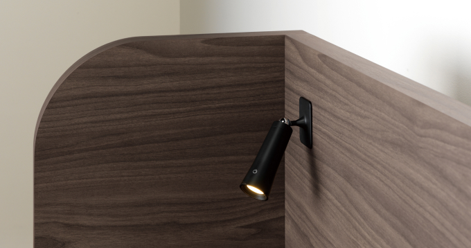 공간의 실용성을 높여주는 컴팩트한 2단 선반과 타이머가 가능한 탈부착식 스팟 조명을 갖췄습니다.