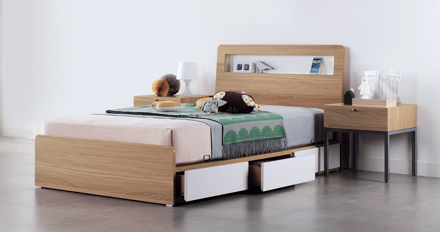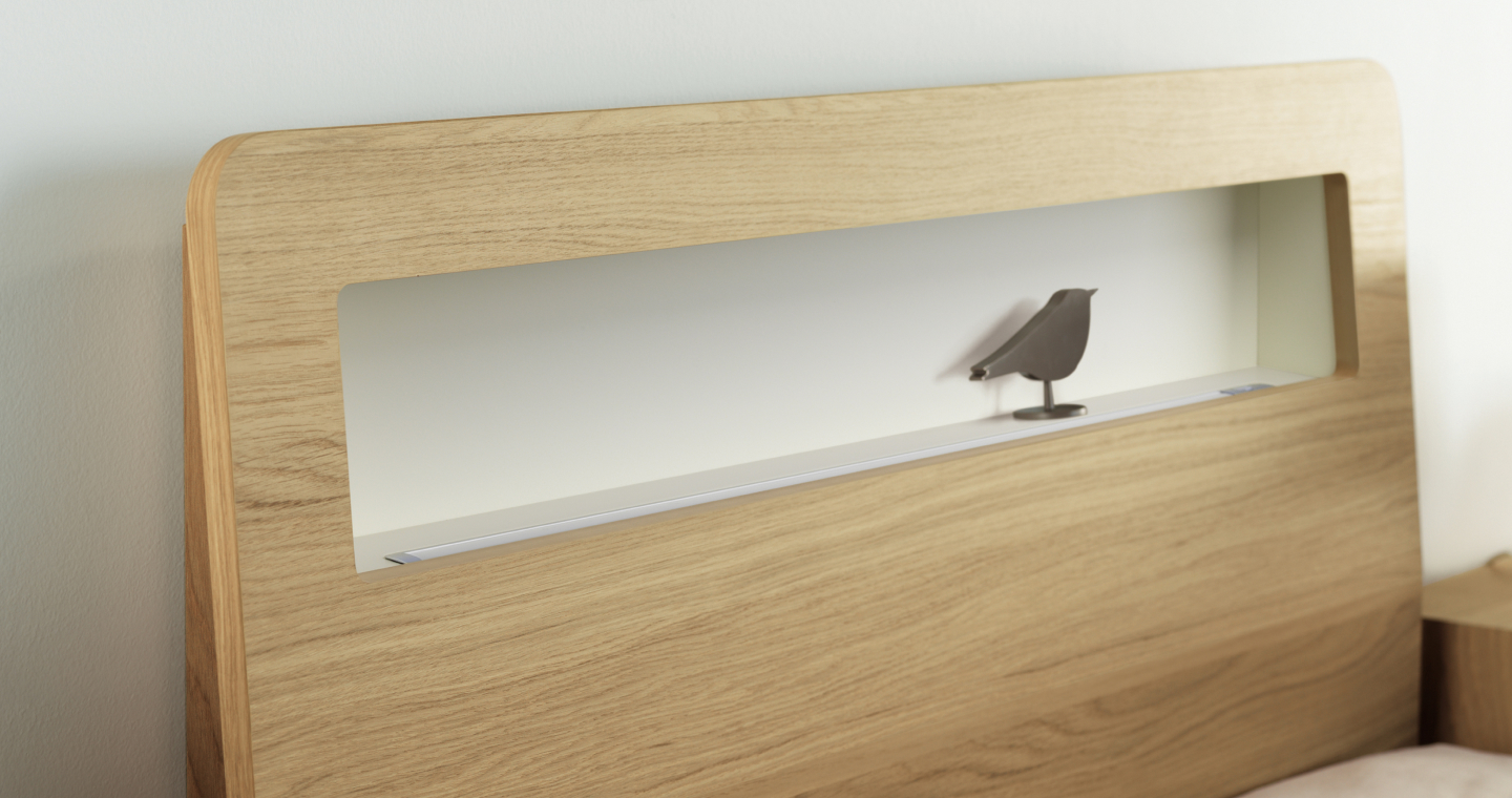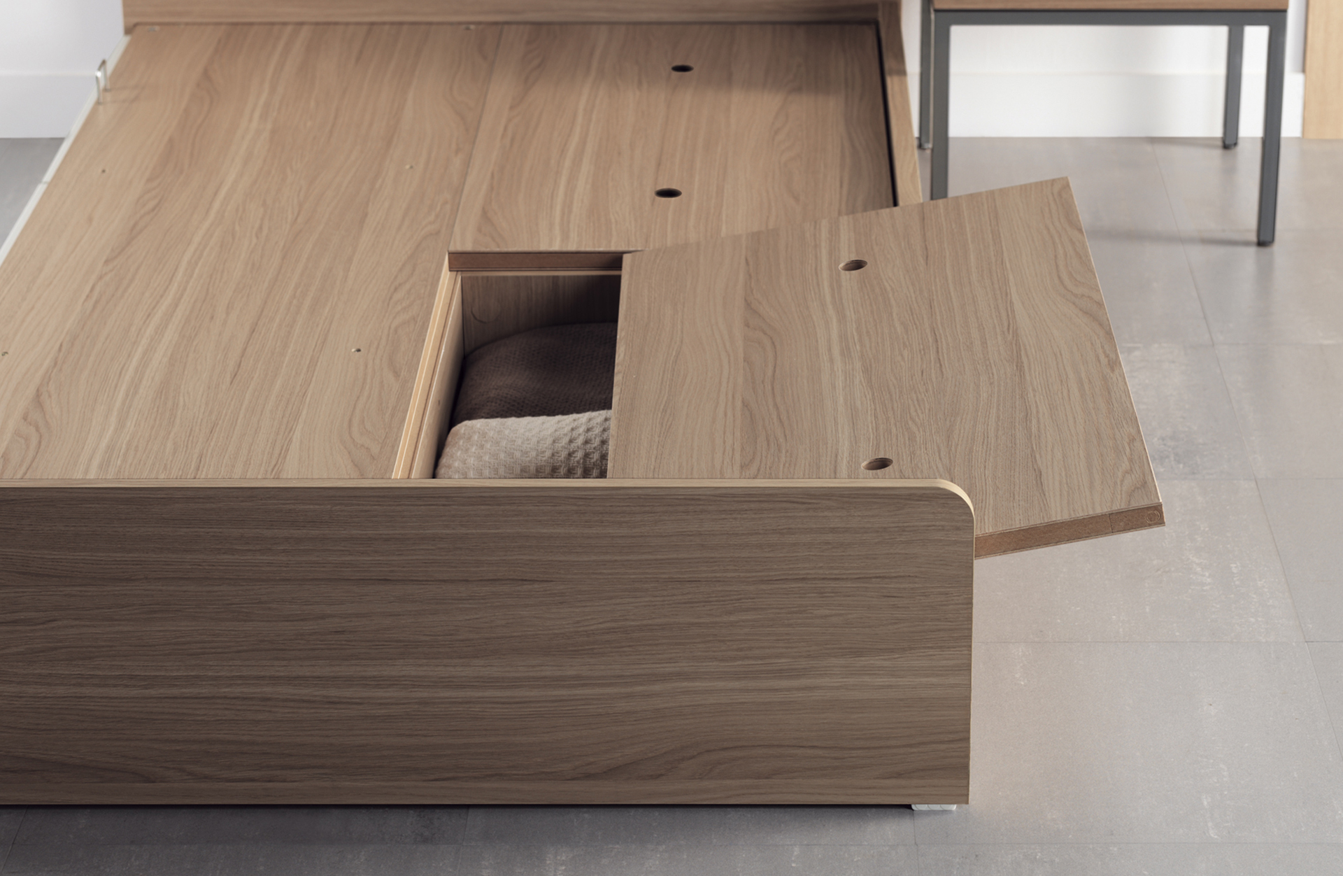 헤드보드에 위치한 넉넉한 수납공간에 알람 시계, 책 등을 보관할 수 있도록 디자인되었습니다.