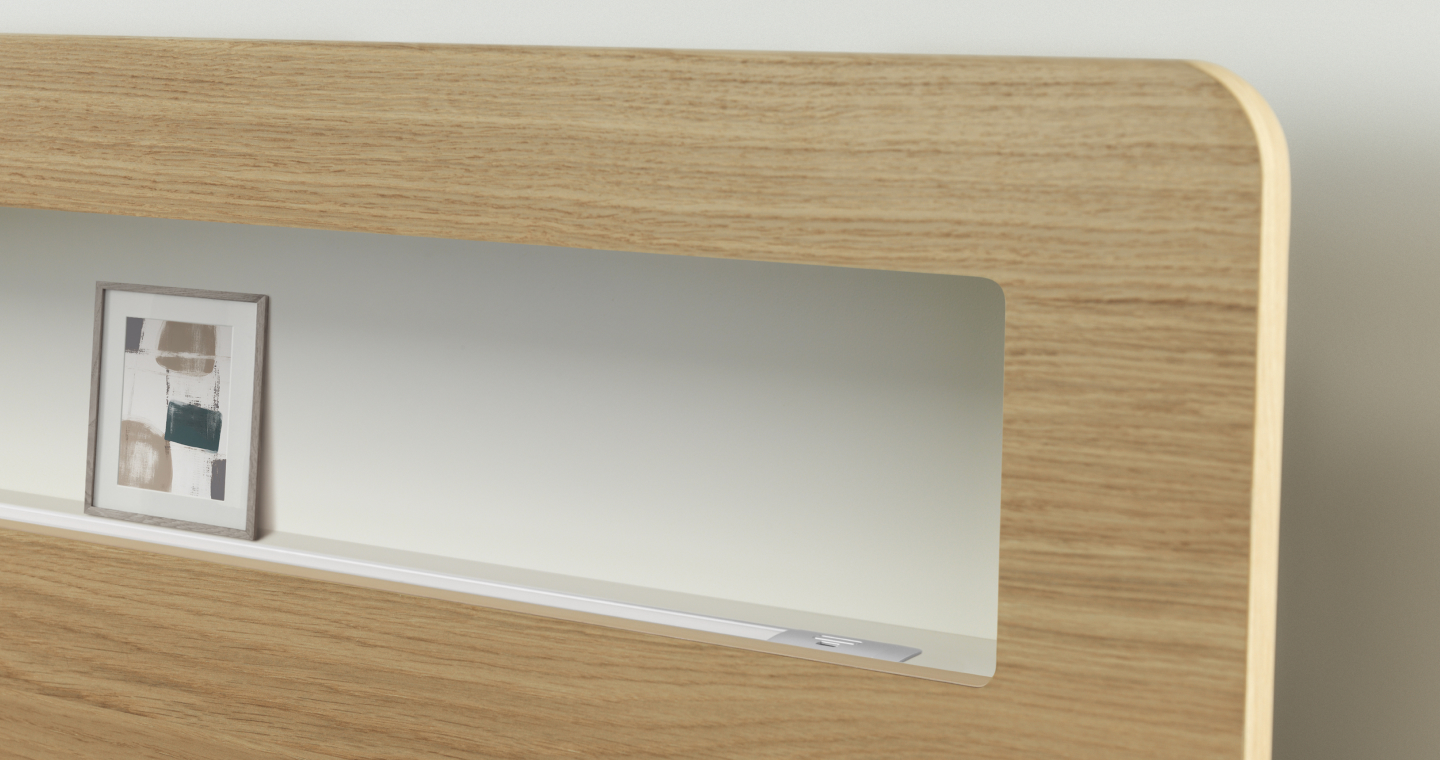 헤드보드에 위치한 넉넉한 수납공간에 알람 시계, 책 등을 보관할 수 있도록 디자인되었습니다.