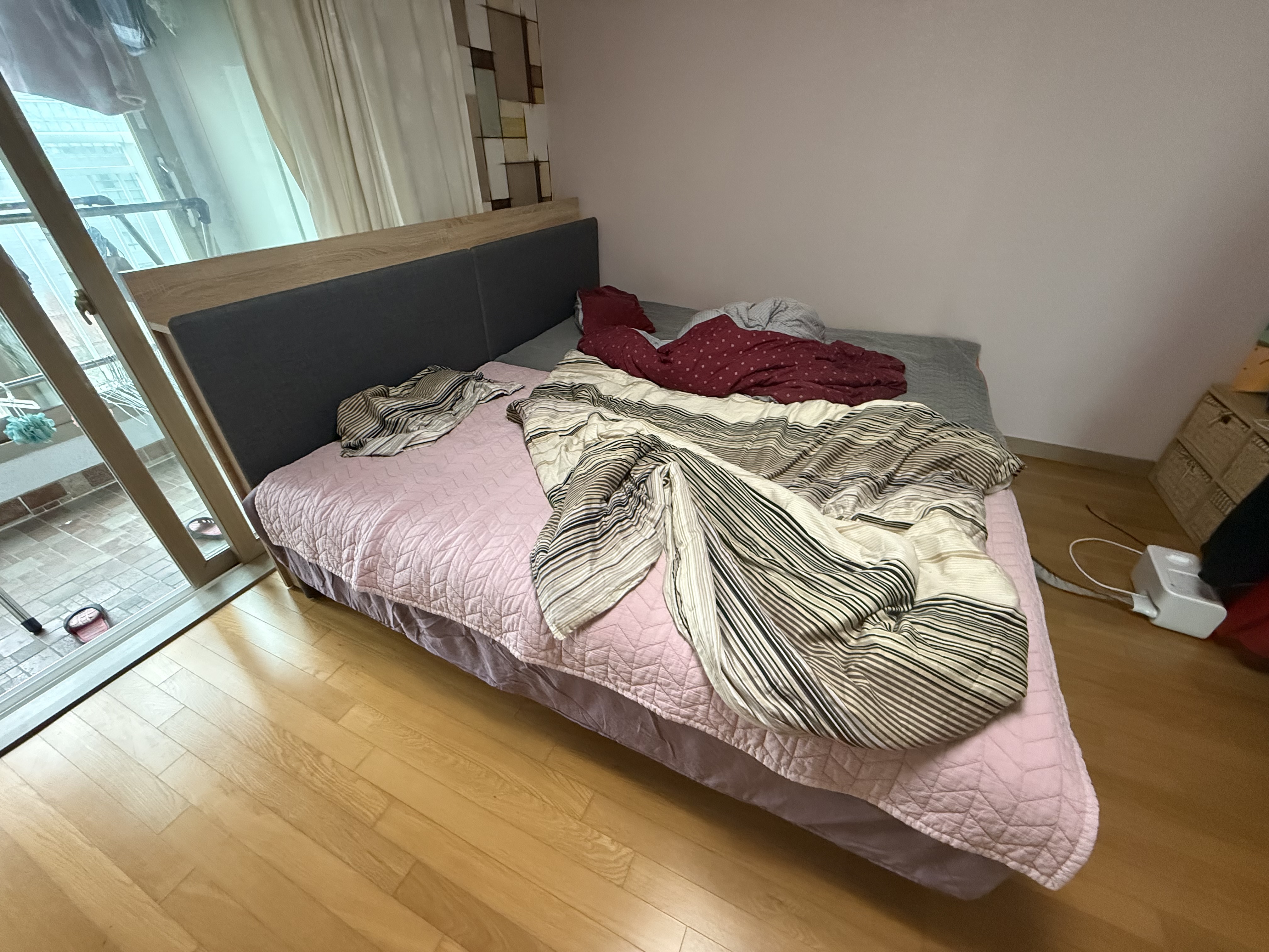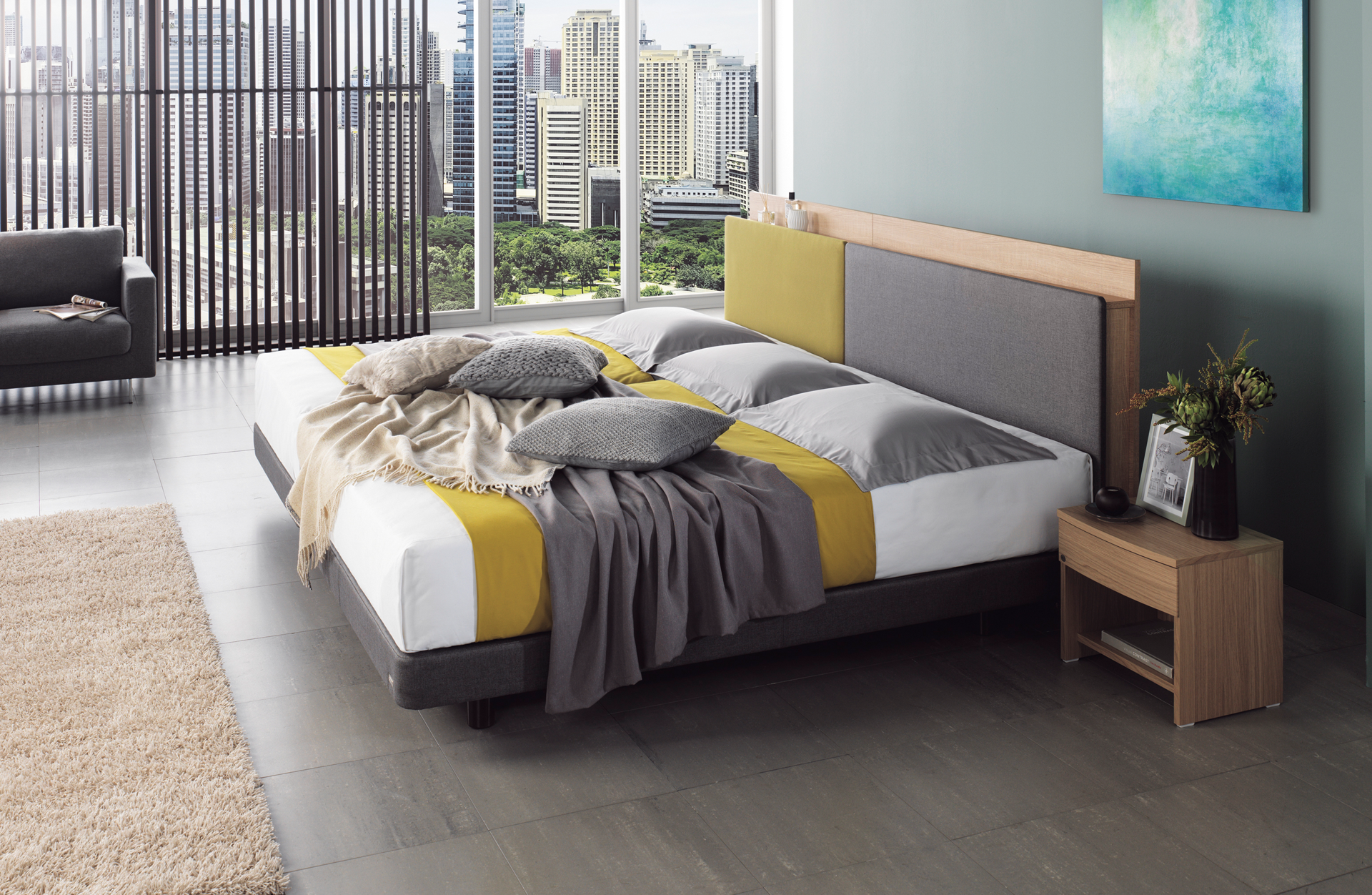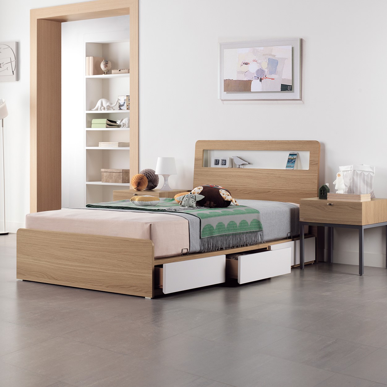 포근하고 따듯한 이미지를 가지는 수납형 헤드보드 디자인의 침대