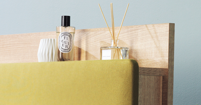 헤드보드 상단에는 수납을 고려하여 침대의 실용성을 높였습니다.