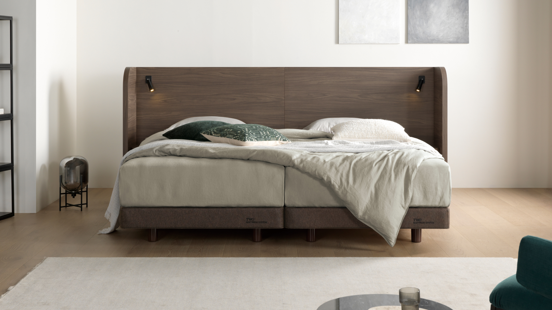 N타입 투매트리스 시스템이 적용 가능하며, 트러플 월넛 컬러로 고급 호텔에 온 것 같은 안락함을 느낄 수 있습니다.