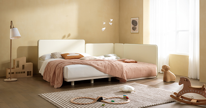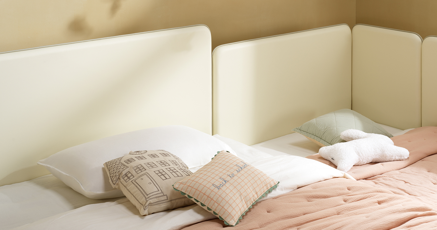 산뜻하고 화사한 무드의 침실을 연출하는 아이보리 컬러의 두툼하고 탄력있는 가드로 편안한 안정감을 제공합니다.