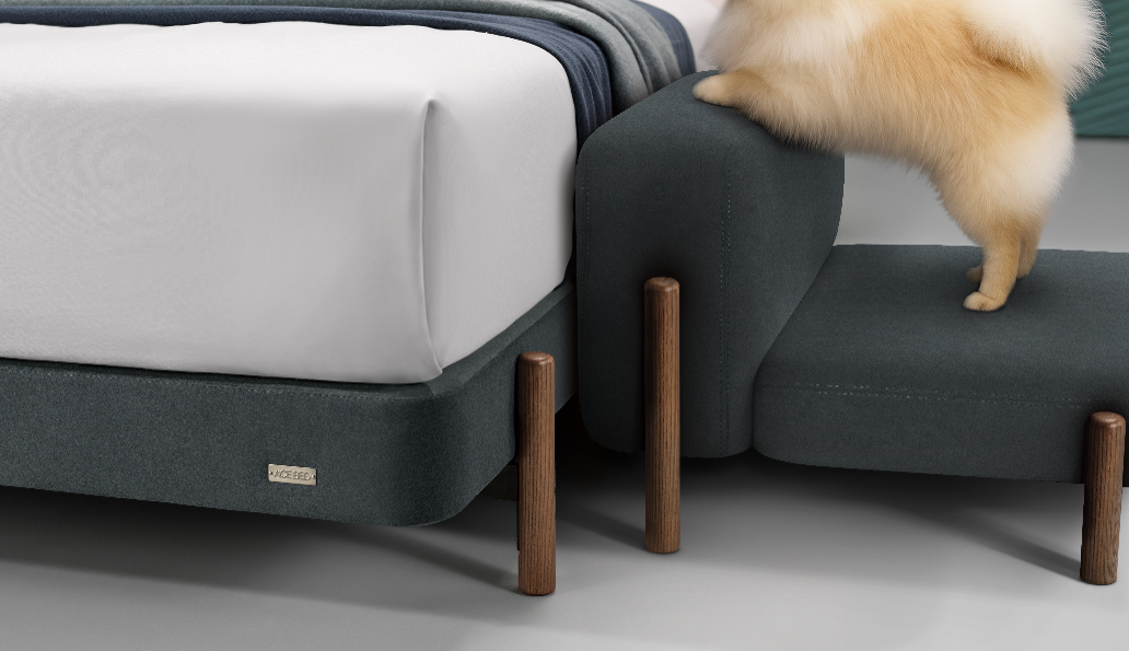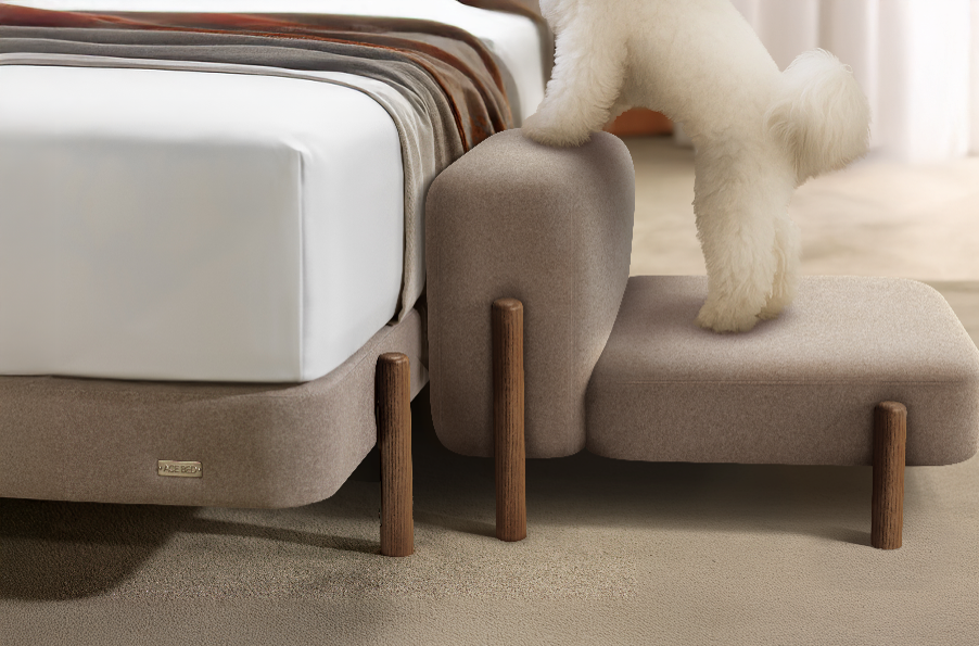 방석과 등받이 쿠션이 계단 역할을 해주어 반려동물이 침대에 오르고 내릴 때