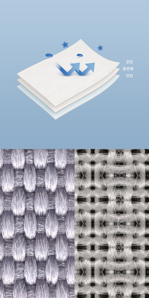- 고기능성 웰로쉬 원단 섬유간 공극이 없어 집먼지 진드기의 서식 불가